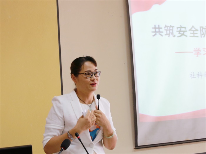 韩蓓丽副主任在总结发言中提到,国家安全不是模糊遥远的概念,而是明确的、具体的、细微的,与每个人都息息相关,国家安全教育是帮助师生增强安全意识,提高维护国家安全责任感和能力的重要平台。大家要认真领会主讲的内容,将理论知识转为指导工作实践的有力武器,进一步推动学校“不忘初心,牢记使命”主题教育,确保党的创新理论在学校落地生根。