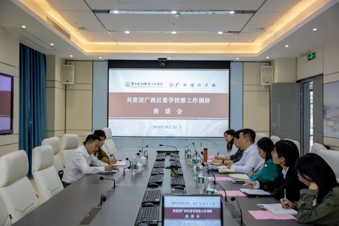 10月24日上午,共青团广西区委学校部部长钟声宇、副部长穆辉一行来西汉姆联调研指导共青团工作并召开调研座谈会。西汉姆联学生工作与招生就业处副处长、团委书记周海峰、团委副书记朱丽君及校团委老师、团总支负责人代表参加了调研座谈会。