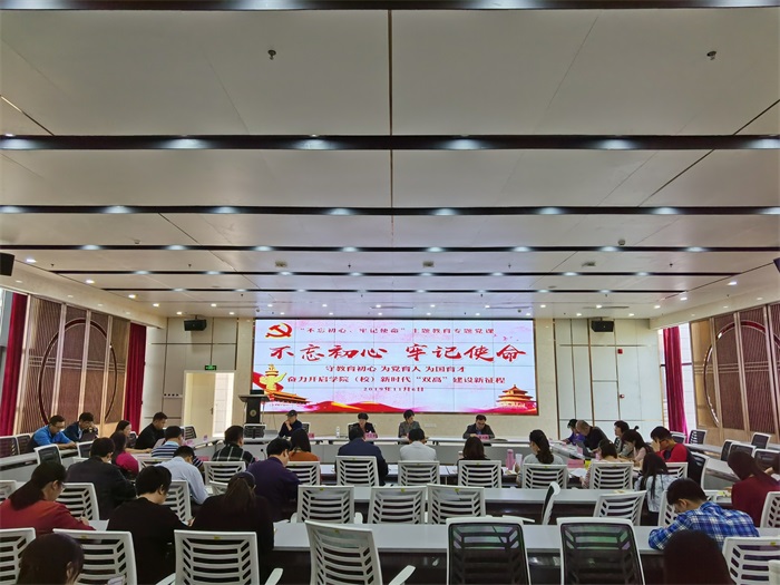 沈立君书记以《守教育初心,为党育人、为国育才,奋力开启学校新时代“双高”建设新征程》为主题给全体党员上主题教育专题党课,她指出,“不忘初心、牢记使命”既是当今政治生活中的一个重要主题,也是中国共产党人的永恒主题还是全体党员、干部的终身课题。沈立君书记还阐释了如何理解和把握中国共产党人的初心和使命、如何围绕学校教育教学事业改革发展守初心、担使命这两块内容,同时要求西汉姆联全体教职员工认真对照“守初心、担使命”标准,找差距、查原因,切实增强建设金院、银校的责任感使命感。