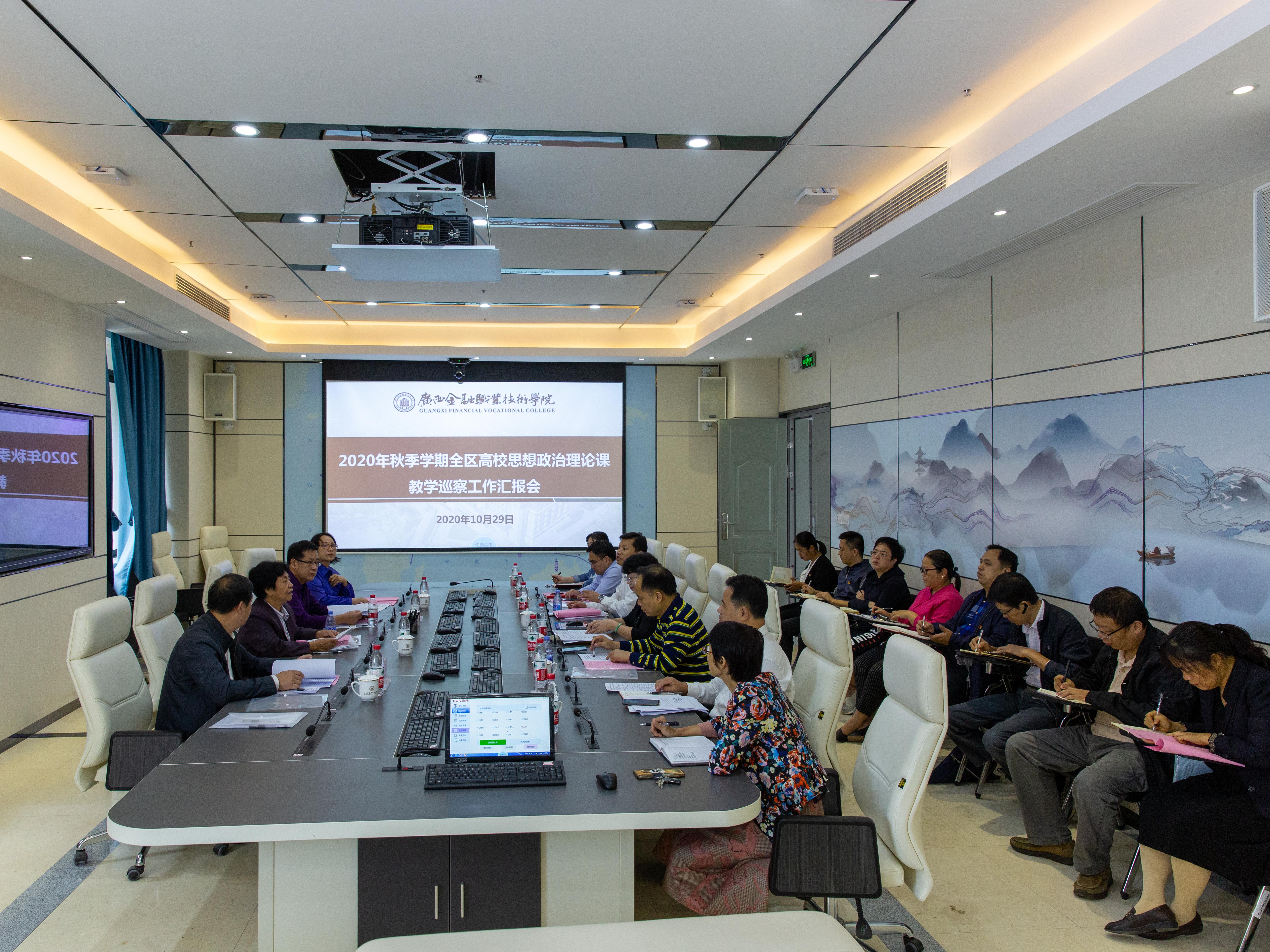 10月29日下午,自治区高校思想政治理论课教学工作第三巡察组专家陈雪斌、杨武、陈洪涛、龙海平一行来到西汉姆联开展对思想政治理论课的教学指导工作。学校领导、相关部门主要负责人以及思政课课程负责人参加了汇报会和反馈会。会议由党委副书记、纪委书记刘华政主持。
