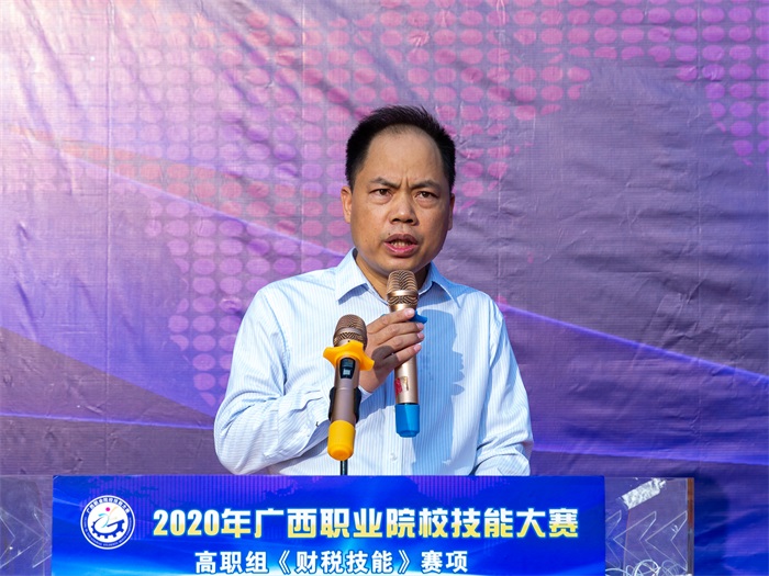 最后,谢沛善副院长预祝各位参赛选手取得好成绩,并宣布2020年广西职业院校技能大赛高职组《财税技能》赛项正式开始。