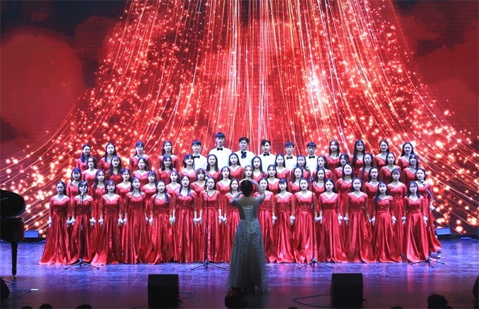 在“青春担当”篇章,各系部合唱团演唱了《彩虹》《知足《夜空中最亮的星》等青春歌曲,唱出了金院青年学子的青春洋溢和朝气蓬勃,展现了新时代青年大学生的亮丽底色。