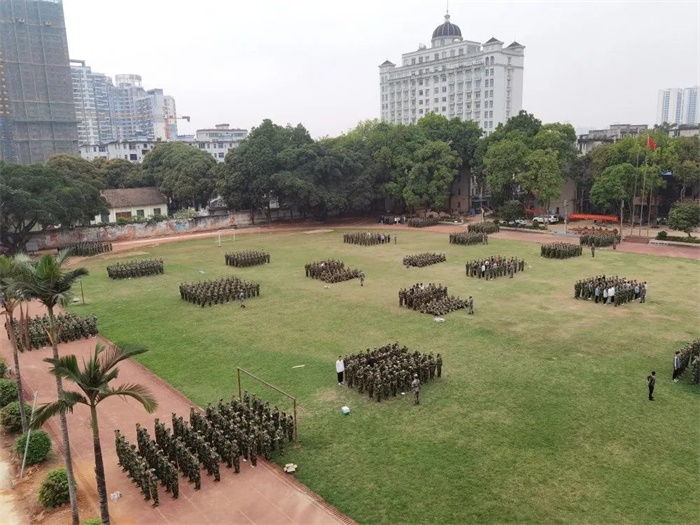 军训动员大会伊始,广西陆战教育学生军训基地的教官们进行了队列表演,整齐划一的姿势,雄浑嘹亮的口号,铿锵有力的步伐,让学生们深刻感受到了威严之美、整齐之美、次序之美!