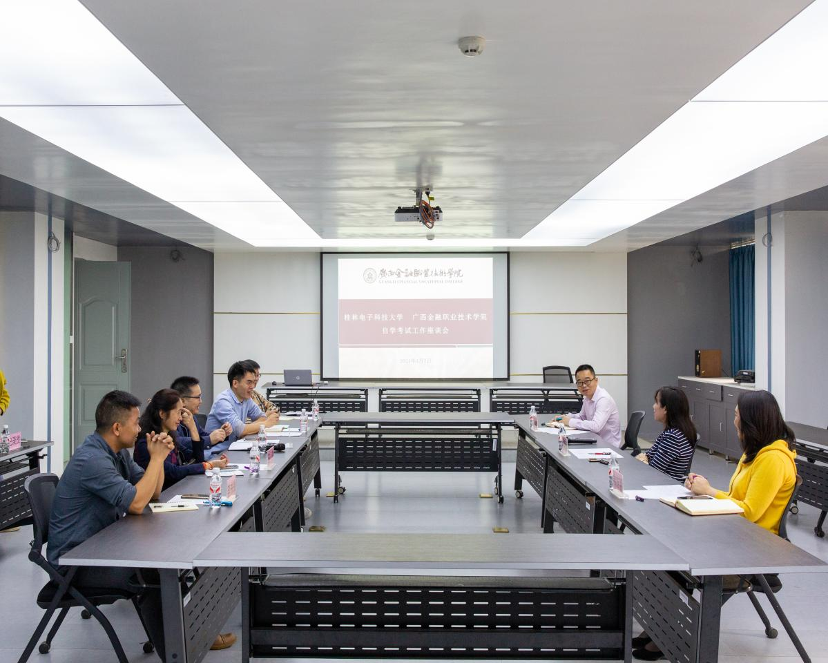 4月7日上午,桂林电子科技大学继续教育学院韦必忠副院长及相关部门负责人到西汉姆联交流自学考试工作。学校校长莫海燕、继续教育部主任韦施羽、副主任罗珍资参加本次交流。