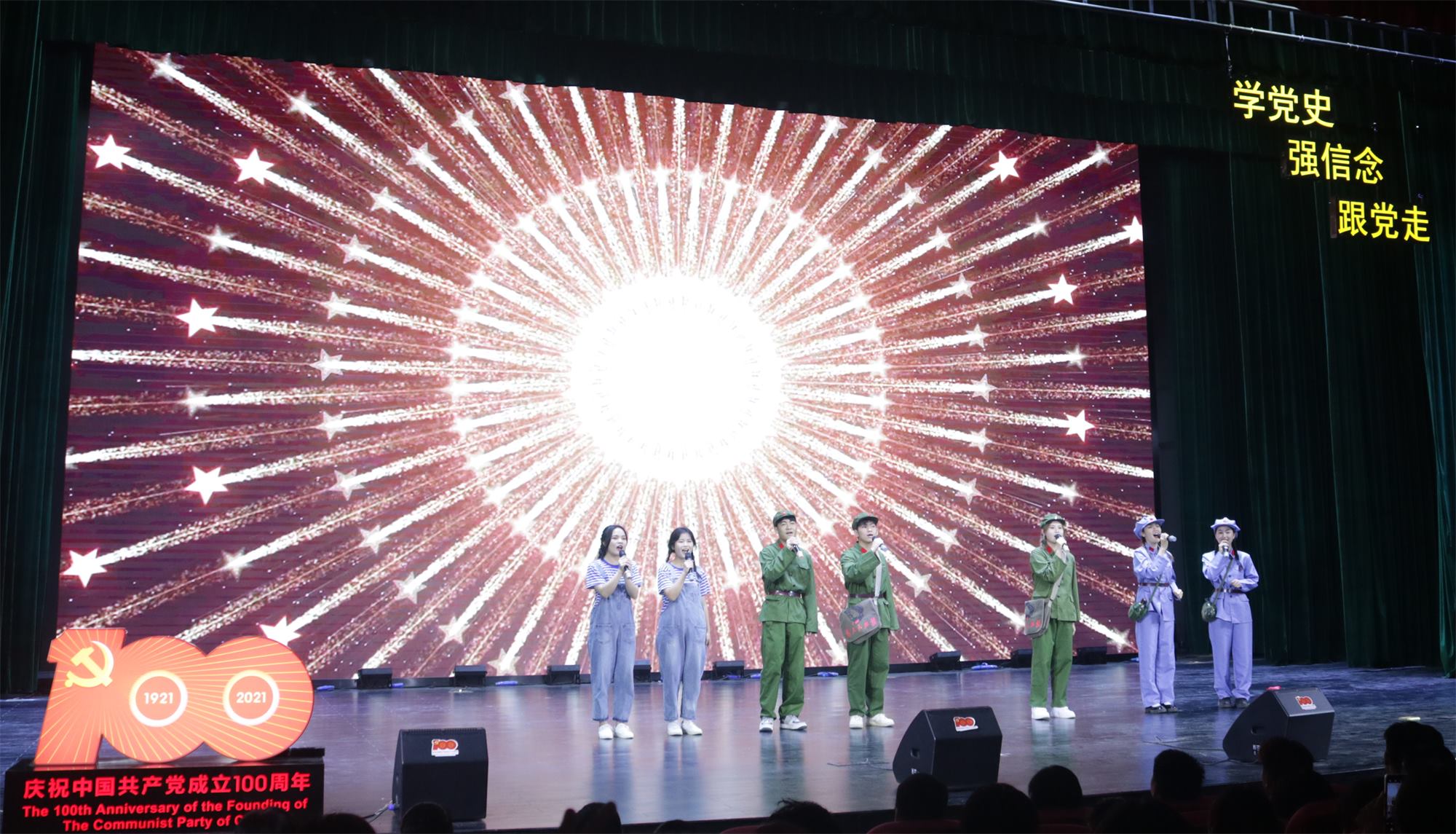文艺演出共有四个篇章:新民主主义革命时期、社会主义革命和建设时期、改革开放和社会主义现代化建设新时期、中国特色社会主义新时代。同学们动情的演绎中,带领师生观众重温了党的百年历史。这既是一场文艺演出,更是一堂生动而有温度的思政课。学校团委表示,在今后的工作中,将继续探索更多的寓教于乐的形式,实现以美育德育、以艺术化人心的目的,让别样的思政课堂给予学生们人生的启迪、智慧的光芒和精神的力量。