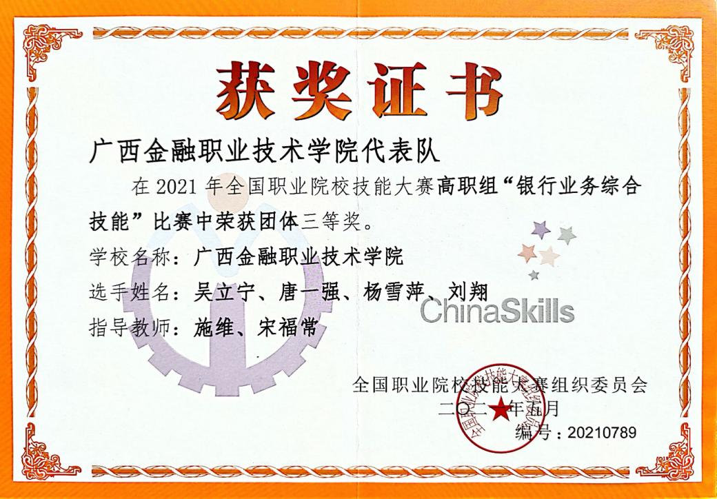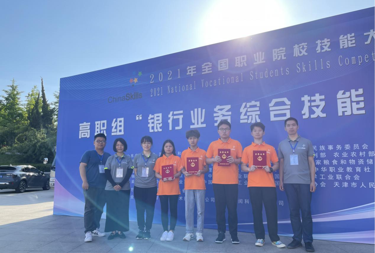 6月11日,由教育部、山东省人民政府等36个部委、省级人民政府主办,山东省教育厅、青岛市人民政府、山东省商务厅承办,山东外贸职业学院协办的2021年全国职业院校技能大赛高职组“银行业务综合技能”赛项圆满落下帷幕。来自全国各省(区、市)的28支代表队经过两天的激烈角逐,我院金融系教师施维、宋福常指导的4名参赛选手唐一强、刘翔、杨雪萍、吴立宁荣获团体三等奖。