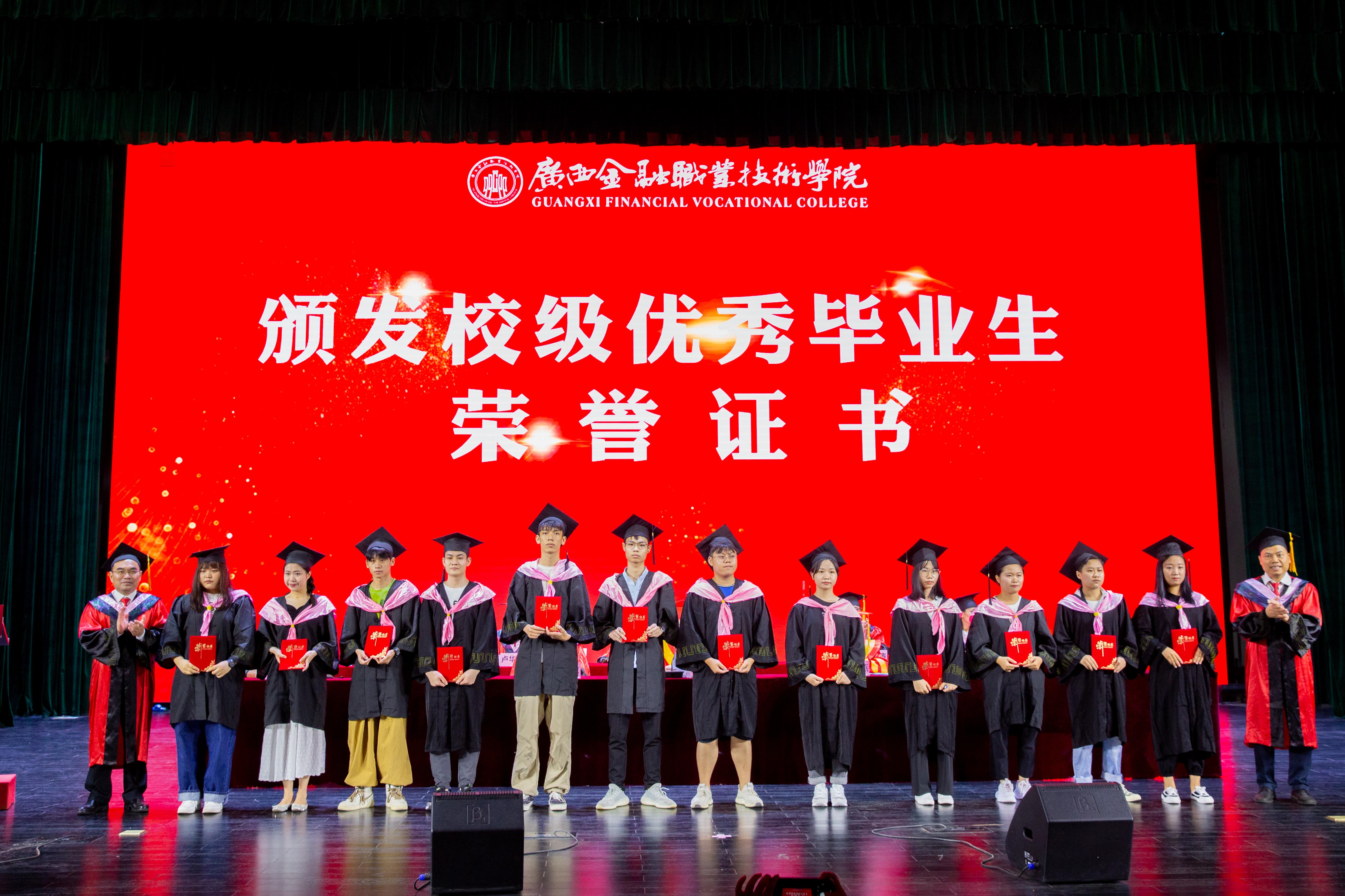 西汉姆联领导宣读了《广西壮族自治区级优秀毕业生表彰决定》《betway西汉姆联官网优秀毕业生表彰决定》,并为荣获自治区优秀毕业生及校级优秀毕业生的同学颁发荣誉证书。