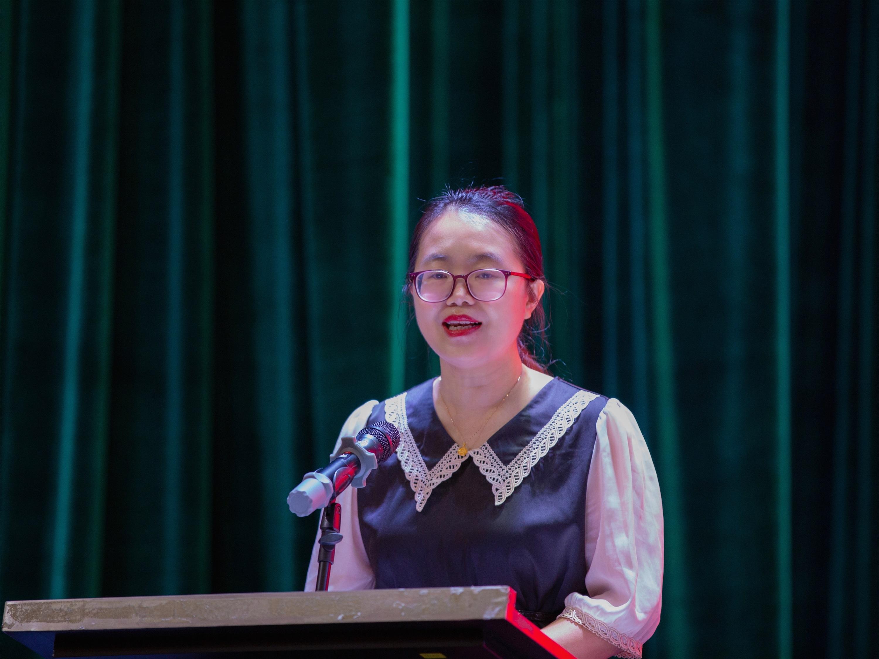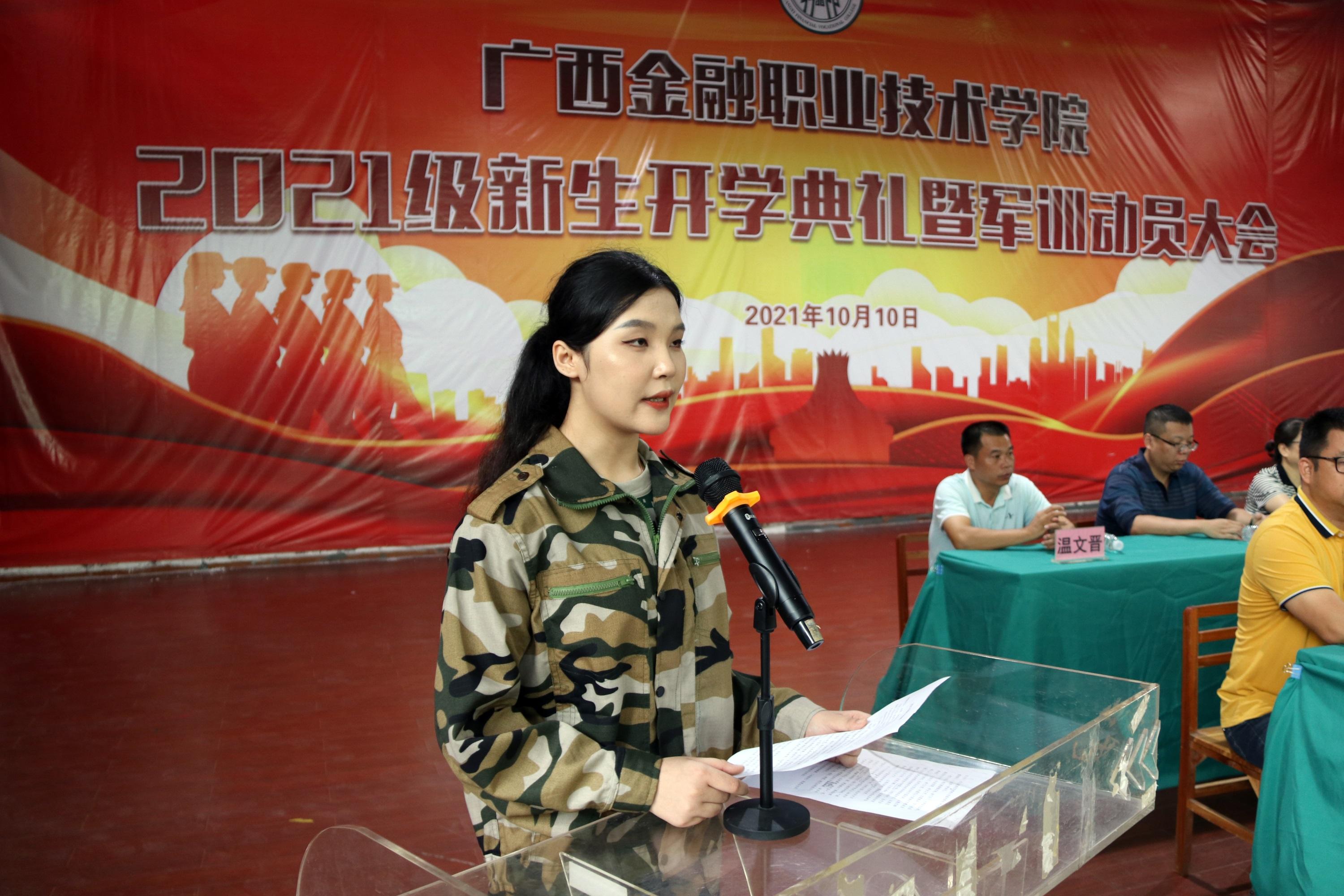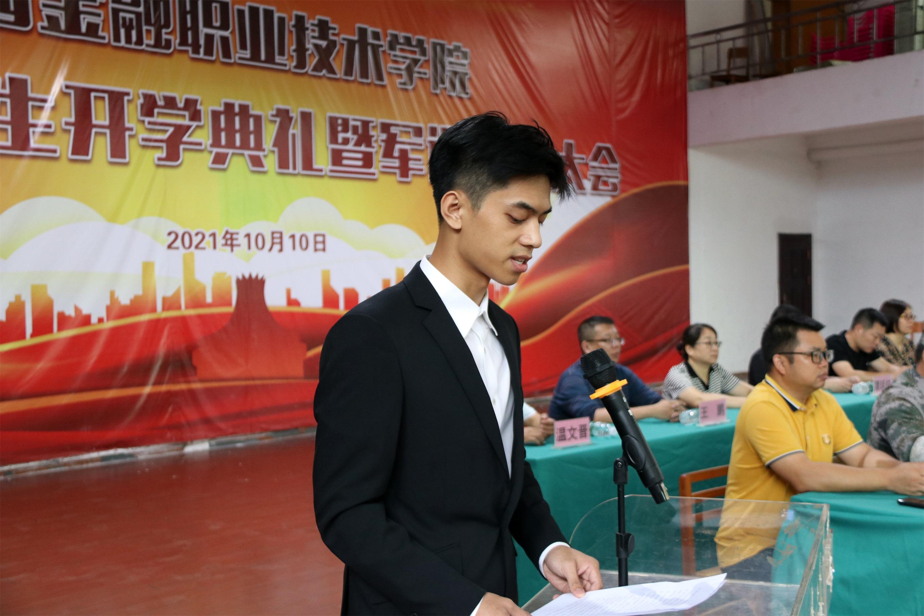 旅游管理系酒店管理2102班黄雅琪同学和金融系金融管理2108班黄慧婷作为新生代表发言。他们感激学校、老师们的亲切关怀以及学姐、学长们的热情帮助,同时表示在未来的三年中携手共进,砥砺前行,争做可堪大任的时代新人。