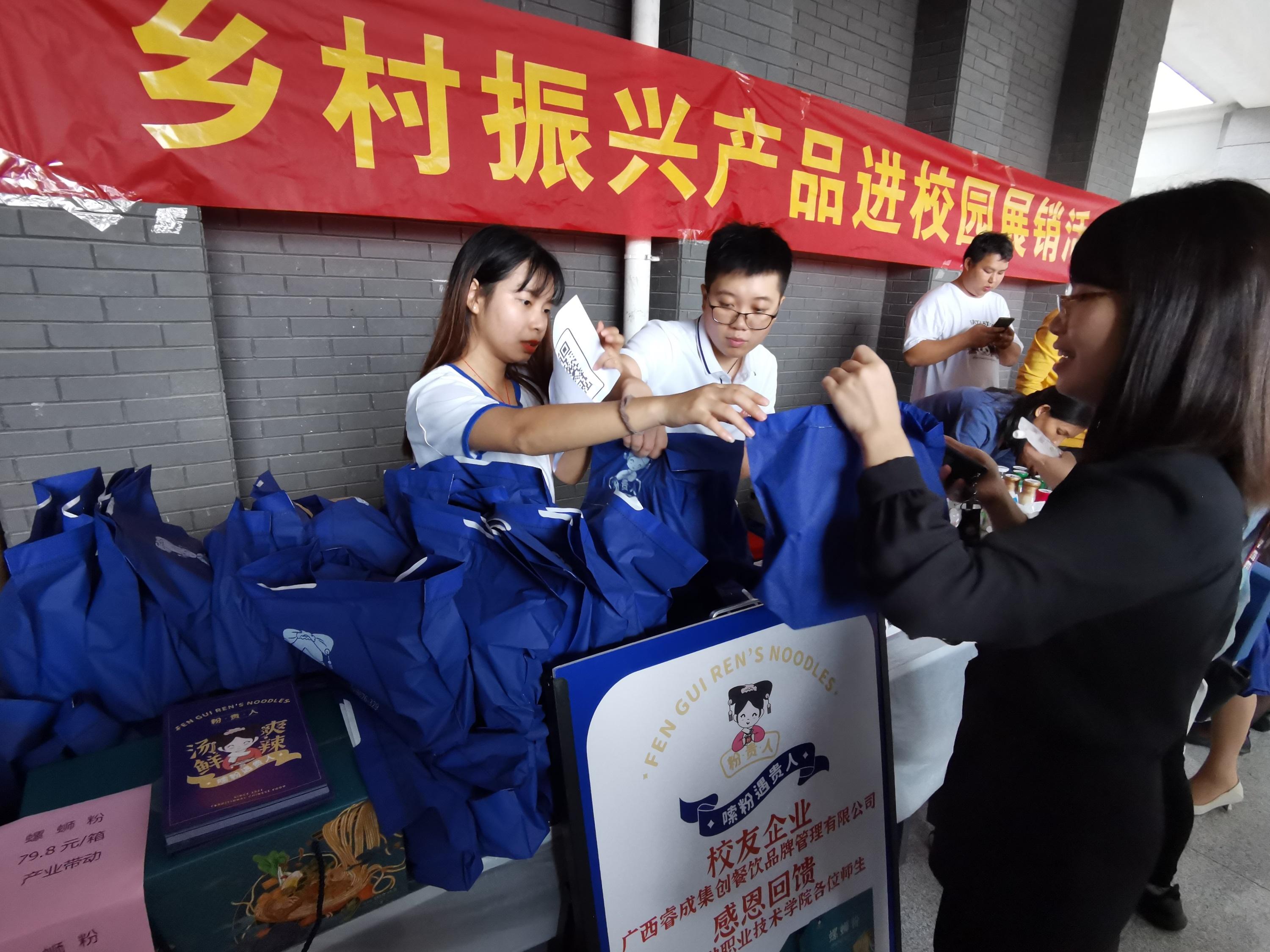 活动还邀请了我院(校)优秀毕业校友广西睿成集创餐饮品牌管理有限公司成睿明董事长,带着创业团队和自创品牌“粉贵人”螺蛳粉产品回校,为学校教职工带来伴手礼感恩回馈母校。