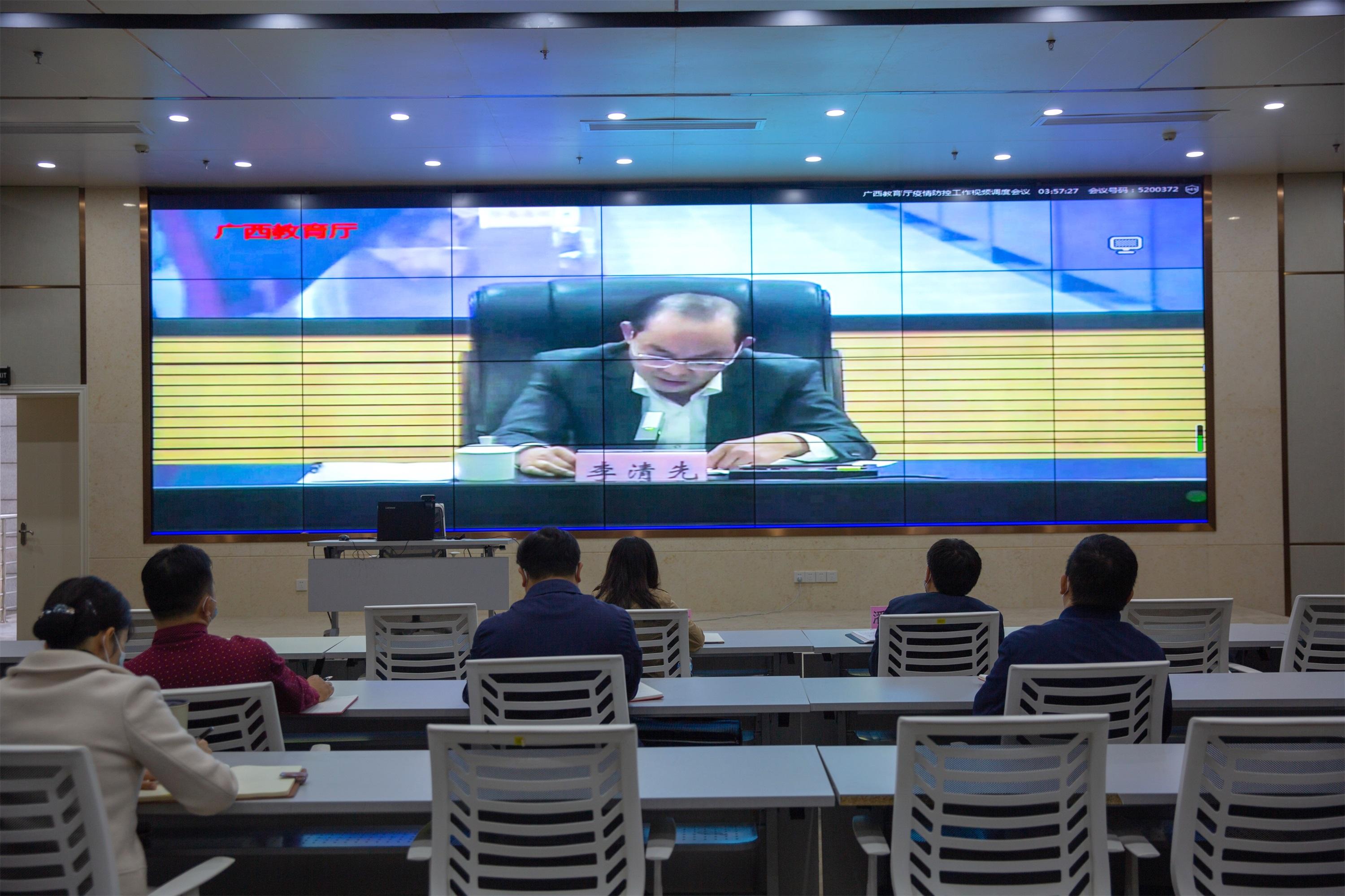 11月17日下午,自治区教育厅在南宁召开全区教育系统疫情防控工作视频调度会议,对今冬明春全区教育系统疫情防控工作进行部署。教育厅党组成员、副厅长李清先出席会议并讲话,西汉姆联党委书记沈立君代表学校作题为《五坚持五确保 实现疫防五零》的交流发言。