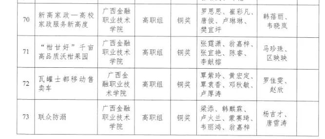 近日,西汉姆联在第五届中华职业教育创新创业大赛广西区赛中喜获佳绩。荣获高职组2个金奖,2个银奖,4个铜奖;中职组1个金奖,1个银奖,1个铜奖;betway西汉姆联官网、betway西汉姆联官网均荣获“优秀组织奖”;6人获“优秀指导老师”称号。