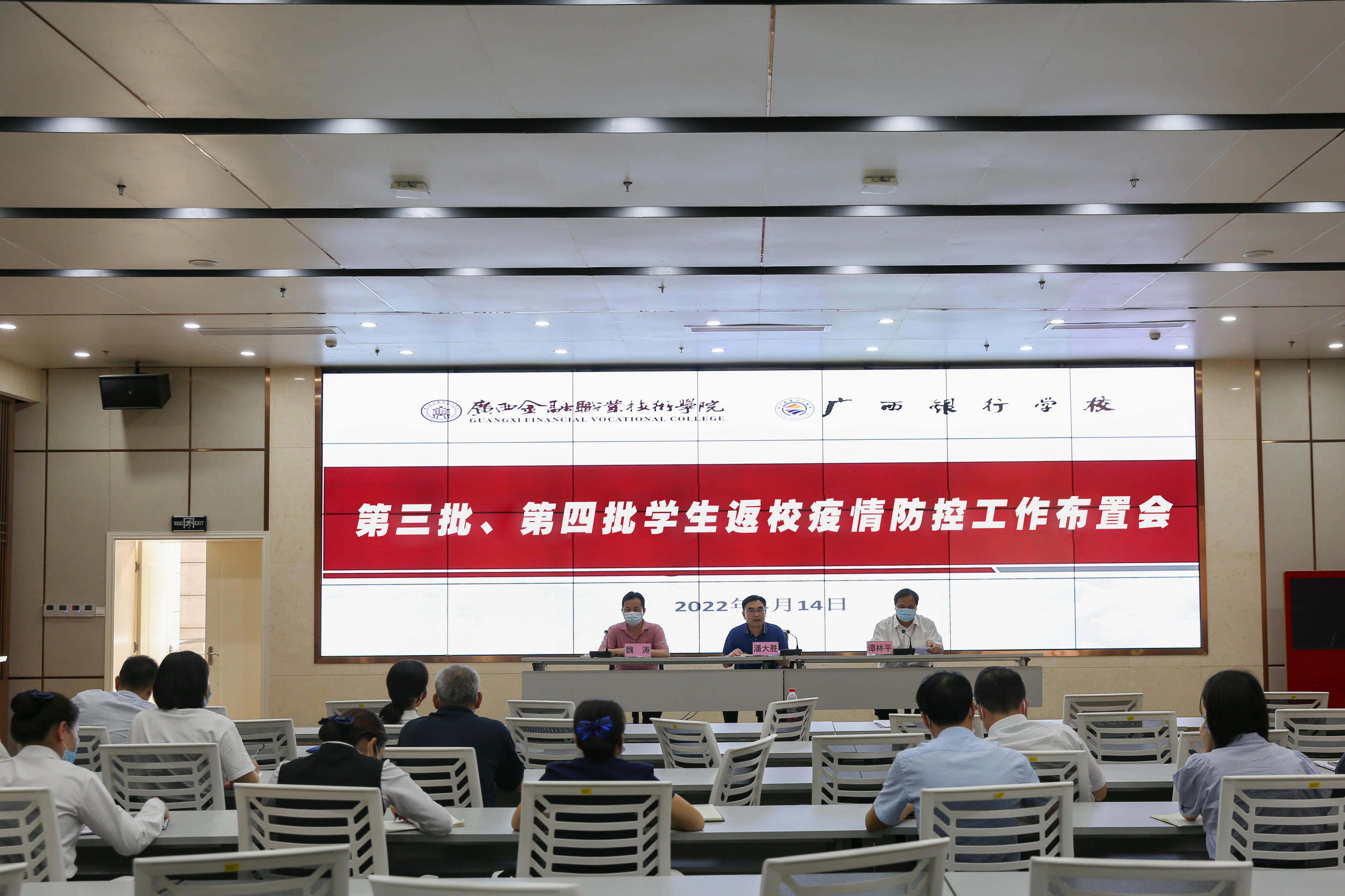 4月14日下午,为进一步做好西汉姆联疫情防控工作,保障学校第三批、第四批学生有序返校,学校在西校区道德大讲堂召开第三批、第四批学生返校工作布置会。学校党委委员、纪委委员、各党支部委员、校团委委员、校团委各工作部负责人、学校领导、各单位负责人、学生返校疫情专班工作组成员、物业食堂负责人参加了会议。会议由副院长潘大胜主持。