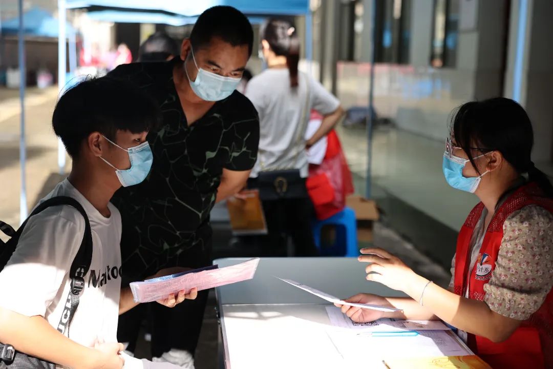 校园里,志愿者为新生指引报到路线、帮助转运行李、答疑解惑,为每一位新生配发内含口罩、体温针、疾病预防传单防范电信网络诈骗宣手册的“爱心包”,现场指导学生下载反诈APP,用温暖的笑容欢迎着每一位远道而来的新生,让他们感受到家一般的关爱与关怀。