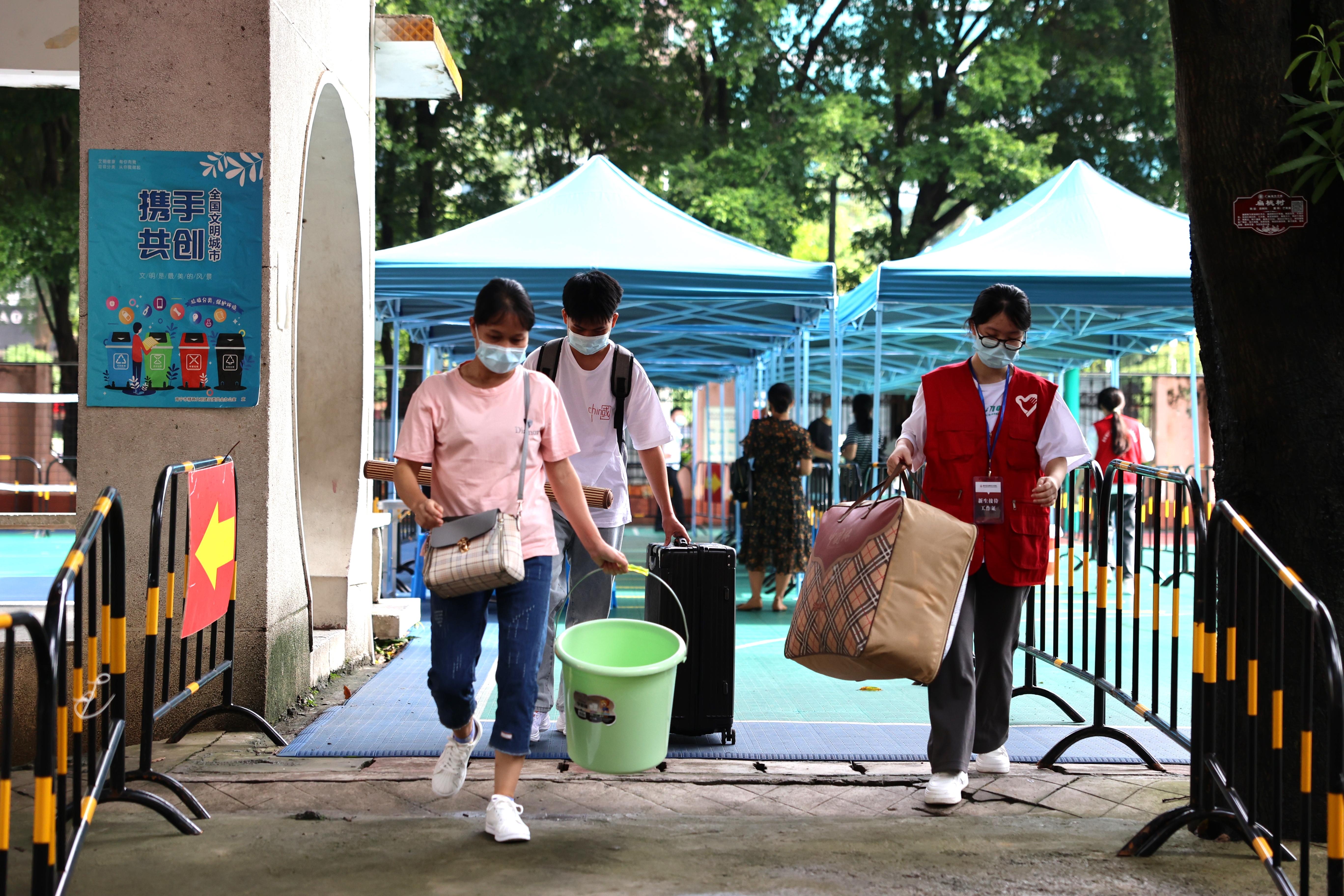 志愿者协助新生搬运行李