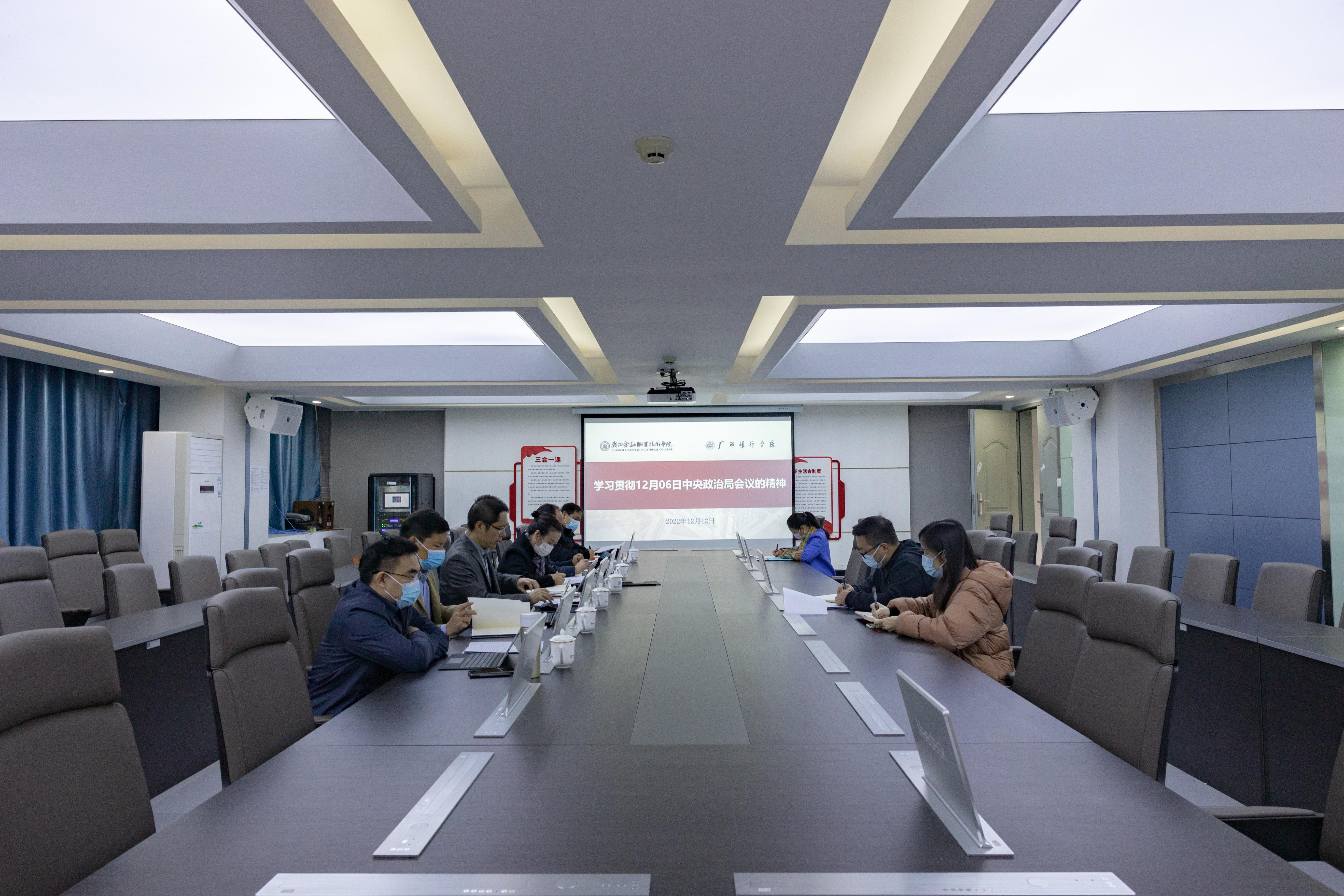 会议强调,要切实把思想和行动统一到习近平总书记在中央政治局会议上的重要讲话精神上来。一要抓好今年的各项工作收官,做好期末放假相关工作的计划安排,认真总结今年取得的各项成绩,查摆不足。还要统筹谋划好明年的开局工作,进一步振奋精神、增强信心,保持学校各项工作不断向前。二要全面贯彻落实党的二十大精神,全面贯彻新发展理念,推动学校事业发展不断取得新的突破。还要坚持稳字当头、稳中求进,统筹做好学校事业发展和疫情防控工作、学生就业工作,形成学校高质量发展的合力,为推动建设社会主义壮美广西新篇章贡献力量。三要统筹推进清廉学校建设各项工作,根据全区清廉学校建设工作推进视频会议精神,扎实做好西汉姆联清廉学校建设的各项工作和完善各类台账,实现校风学风一流、师德师风优良目标,全面推动从严治党向学校各个角落延伸,营造校园风清气正、干事创业的良好政治生态。