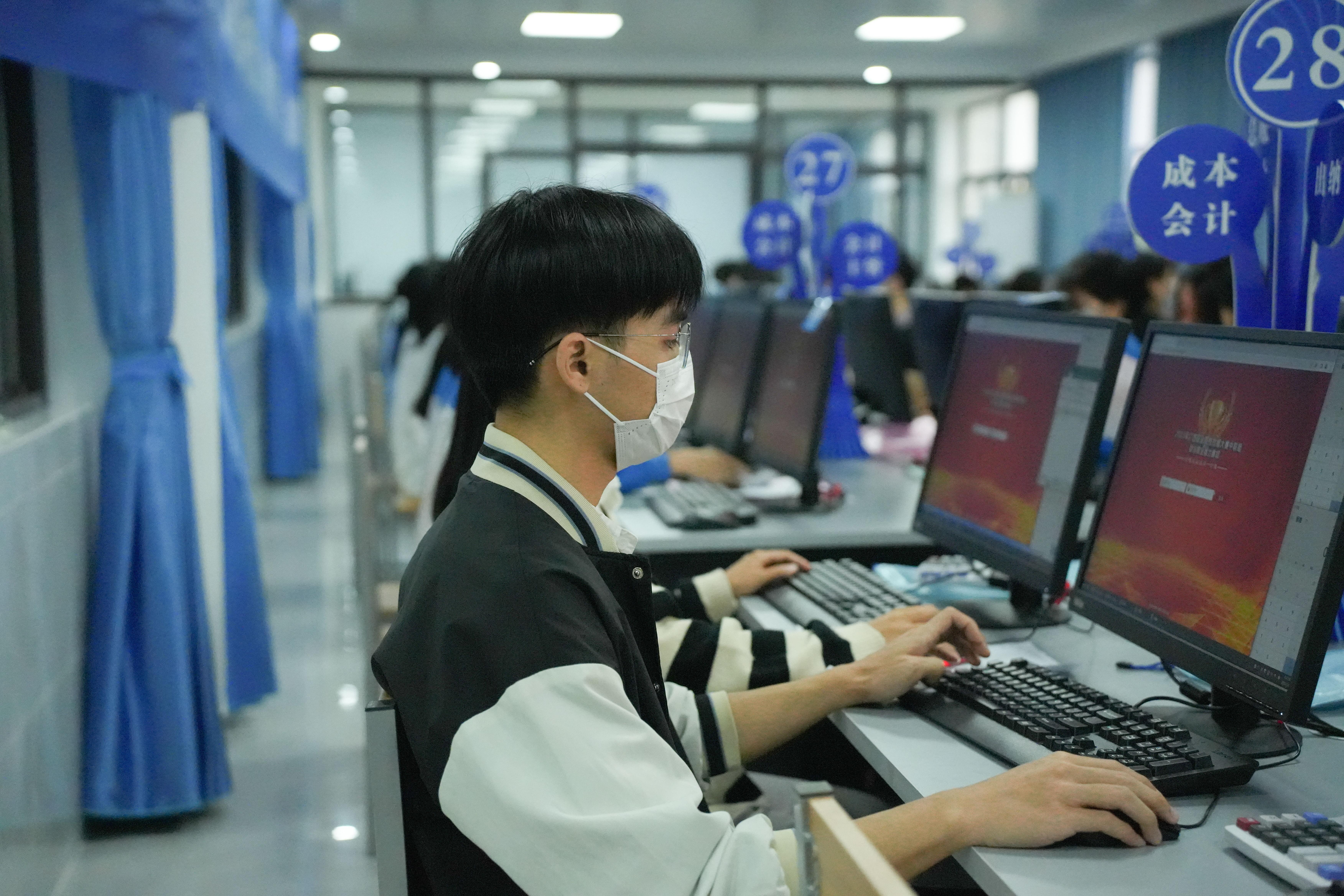 比赛现场,参赛选手们聚精会神地操作着电脑,他们时而敲击键盘,时而阅读赛题,耐心地完成一个又一个任务。他们动作娴熟、迅速,争分夺秒,做到了手、眼、脑的默契配合,展示了的职业院校学生良好的专业素质。