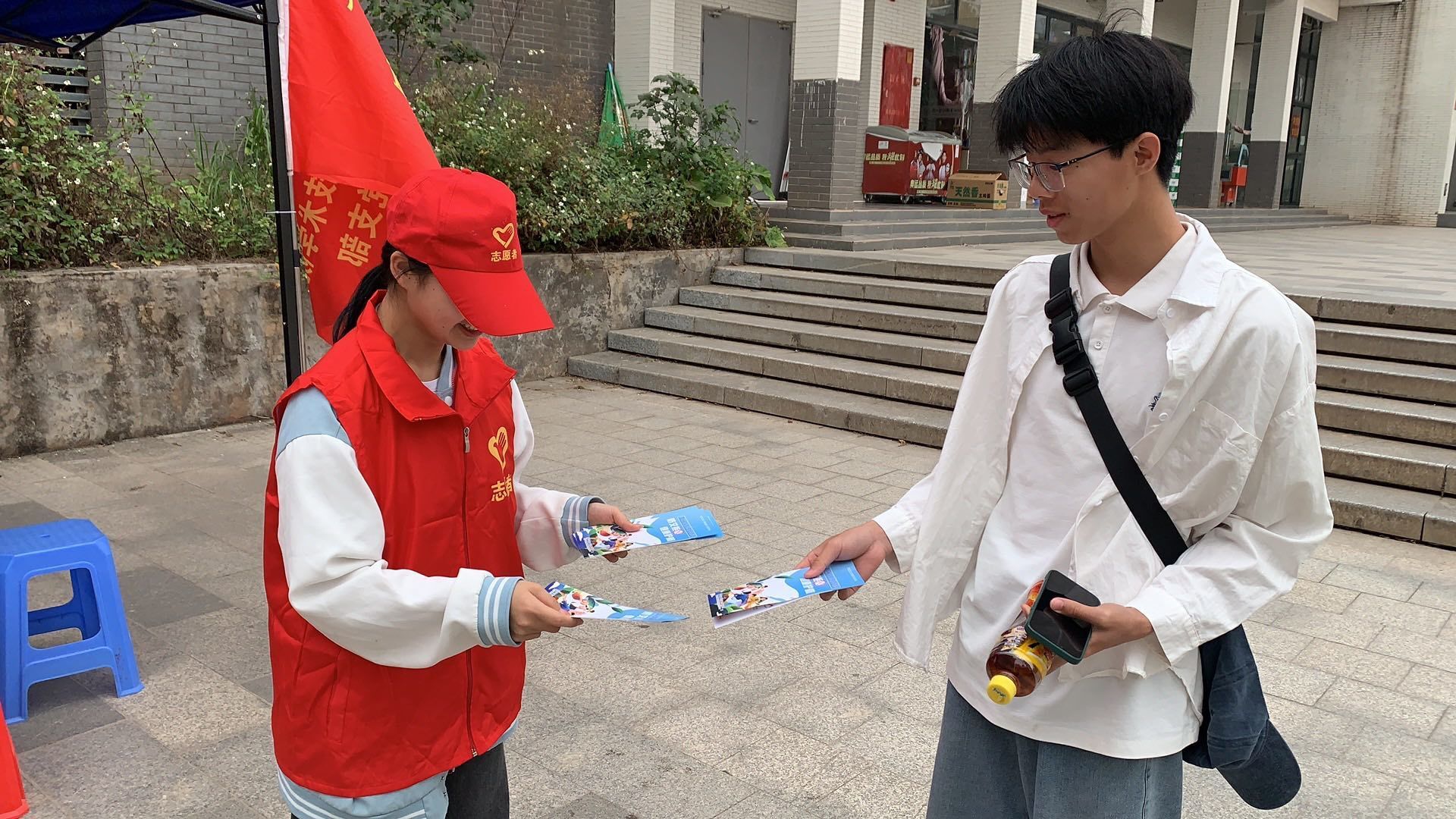 学生志愿者发放防艾抗毒宣传小册子