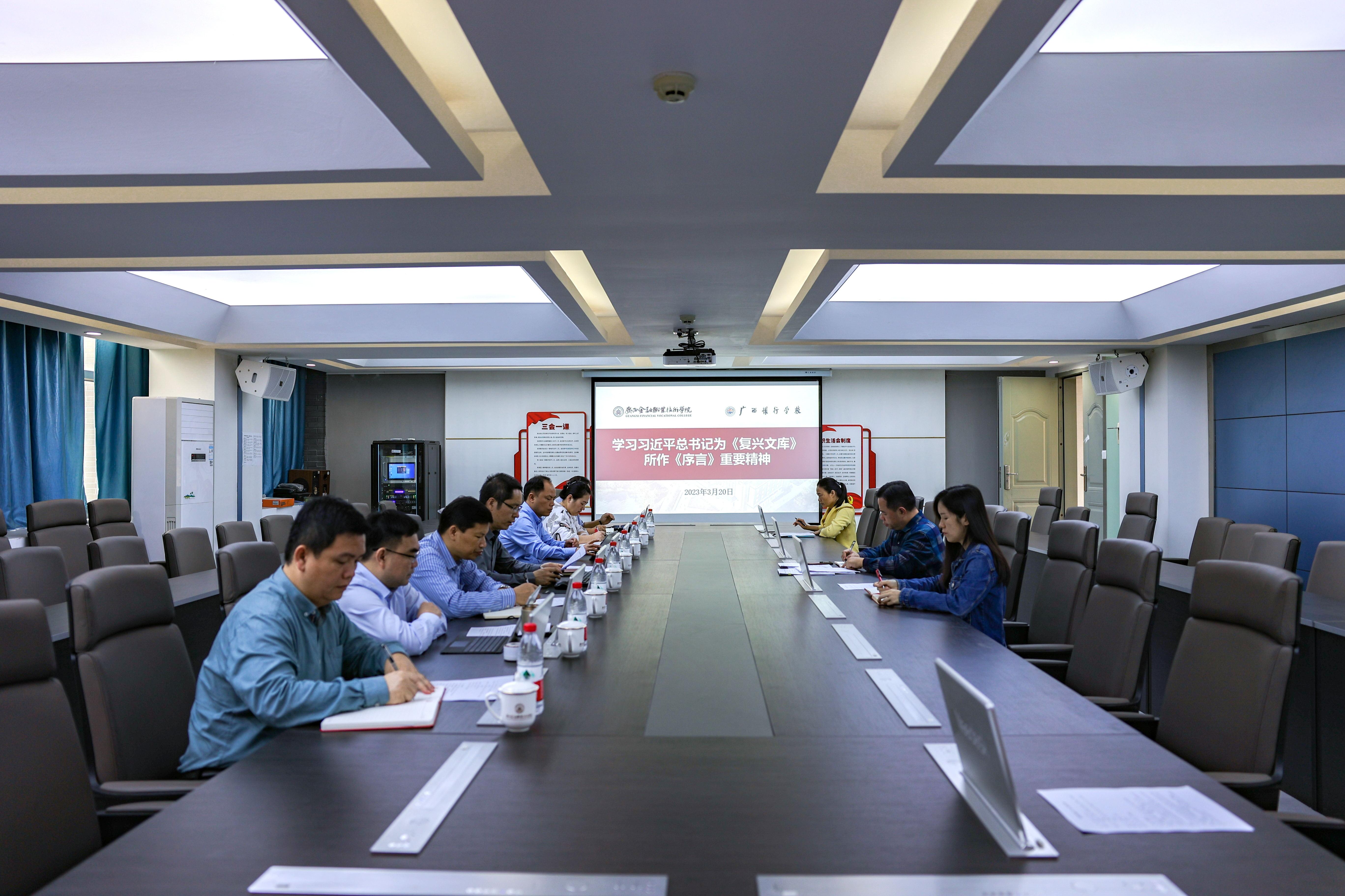 会议指出,习近平总书记所作的《序言》,以历史与现实相贯通的宏阔视野,深刻阐述了中华民族伟大复兴的历史进程、主题主线、光明前景,精辟论述了编纂出版《复兴文库》的重要意义、丰富内涵和时代价值,是一篇思想深邃、鼓舞人心、催人奋进的重要文献。
