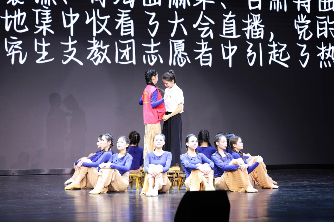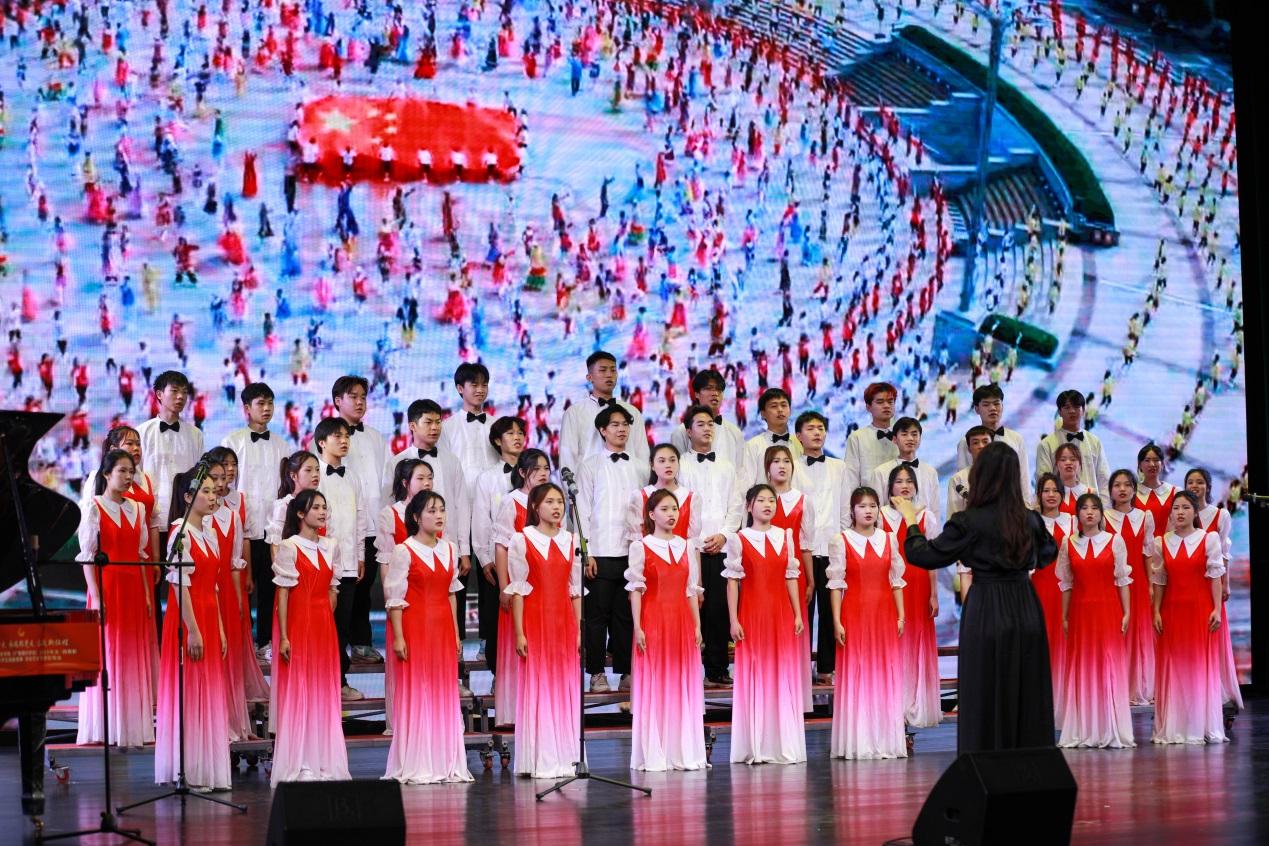 2022年“金院好声音”十强选手带来歌曲合唱《有我》拉开了文艺演出的帷幕,充满力量的歌声唱出了新时代青年的理想与信念。