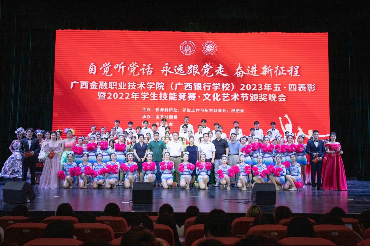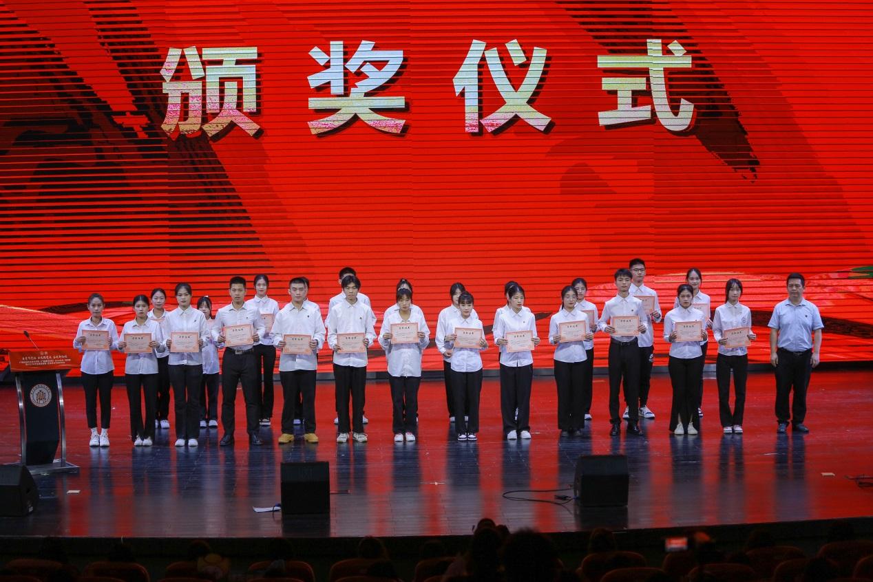 学校领导和相关职能部门领导分别为获得2022年度五四评优先进集体、先进个人以及在2022年学生技能竞赛·文化艺术节系列活动中取得优异成绩的集体和个人进行颁奖。