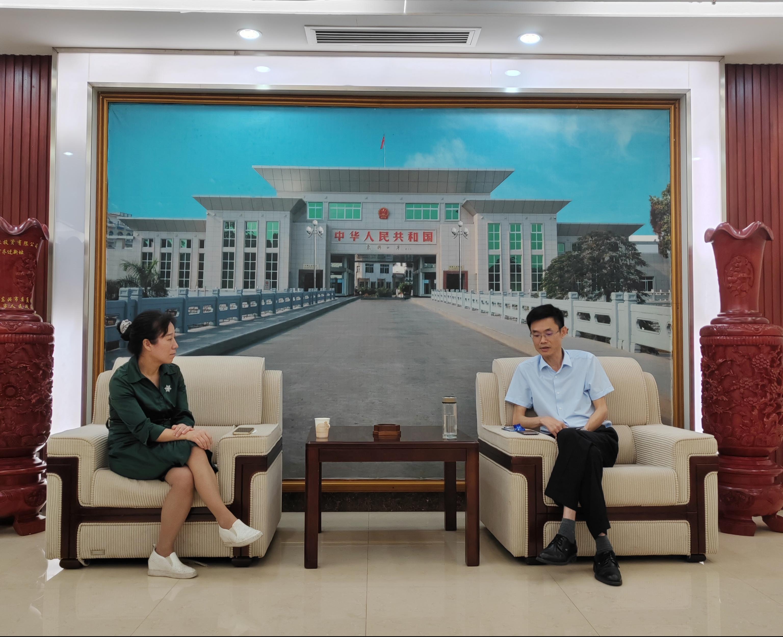 6月8日,莫海燕校长带队到中国(东兴试验区)东盟货币业务中心-东兴市调研,在广西北投建设投资有限公司(以下称“北投建设公司”)调研期间,与北投建设公司陈炫钟副总经理座谈交流,双方均表示要以新的边贸互市条例实施为契机,以服务东兴边贸中心项目为重点,服务边贸经济及边境地区乡村振兴,达成了共同建立行业联合体、共同建设实践中心、共同开发边贸实训项目、共同建立边贸互市结算研究院等合作共识。