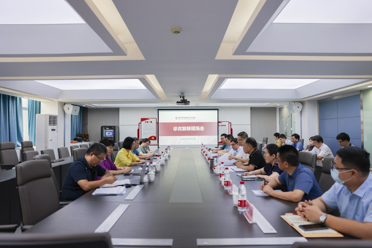 诊断与改进复核工作见面会暨汇报会在西校区512会议室举行,专家组全体成员和学校领导班子出席会议,中层干部、专业与课程负责人等参加会议。