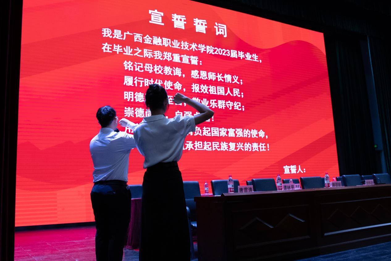 全体师生共同观看了毕业生回忆录视频《新梦起航,未来可期》,动人的歌曲旋律勾起了现场师生关于金院校园的点点滴滴,承载着往昔回忆的一张张照片带动起全场的心灵共鸣,将现场气氛推向高潮。典礼在庄严的国歌声中拉开序幕。
