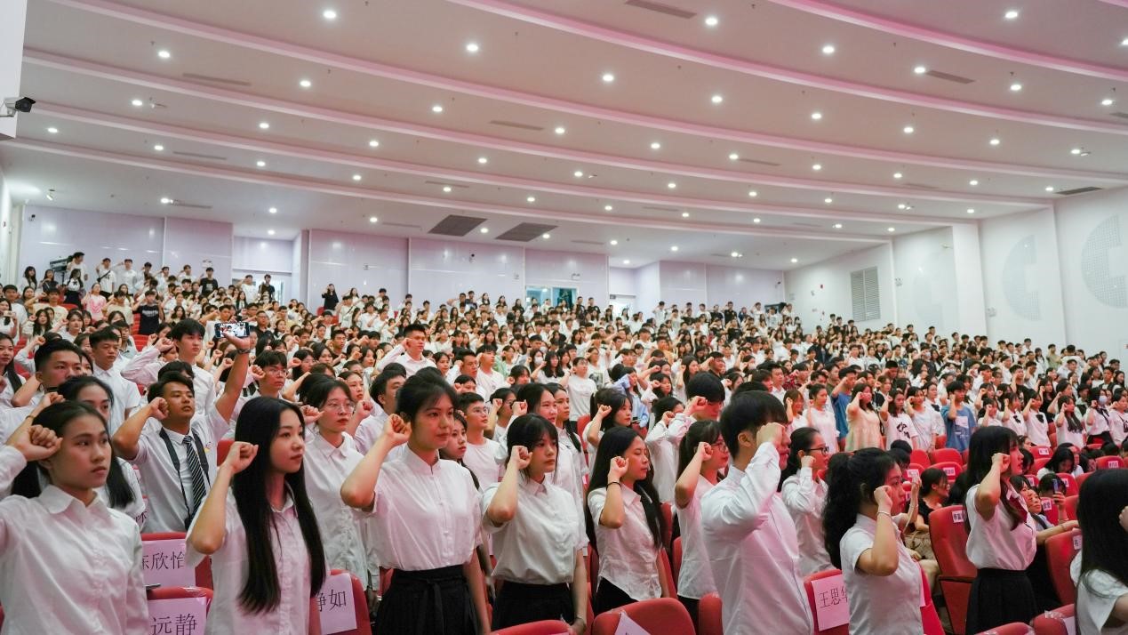 毕业典礼上,全体毕业生宣读毕业誓词,用庄严的承诺告别大学校园,开始新征途。并向全体老师行谢师礼,感谢他们的辛勤付出,感恩他们谆谆教导。