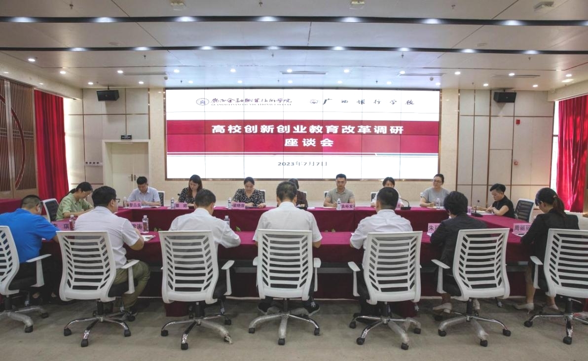 7月7日下午,广西高校创新创业教育改革调研座谈会在西汉姆联西校区道德大讲堂召开。自治区教育厅高教处处长李美清,南宁职业技术学院、广西机电职业技术学院、广西工商职业技术学院、广西电力职业技术学院等4所高校创新创业教育工作相关负责人,以及区赛技术支持单位负责人参与座谈。西汉姆联党委书记李高岩,党委副书记、纪委书记刘华政以及相关部门负责人出席会议。