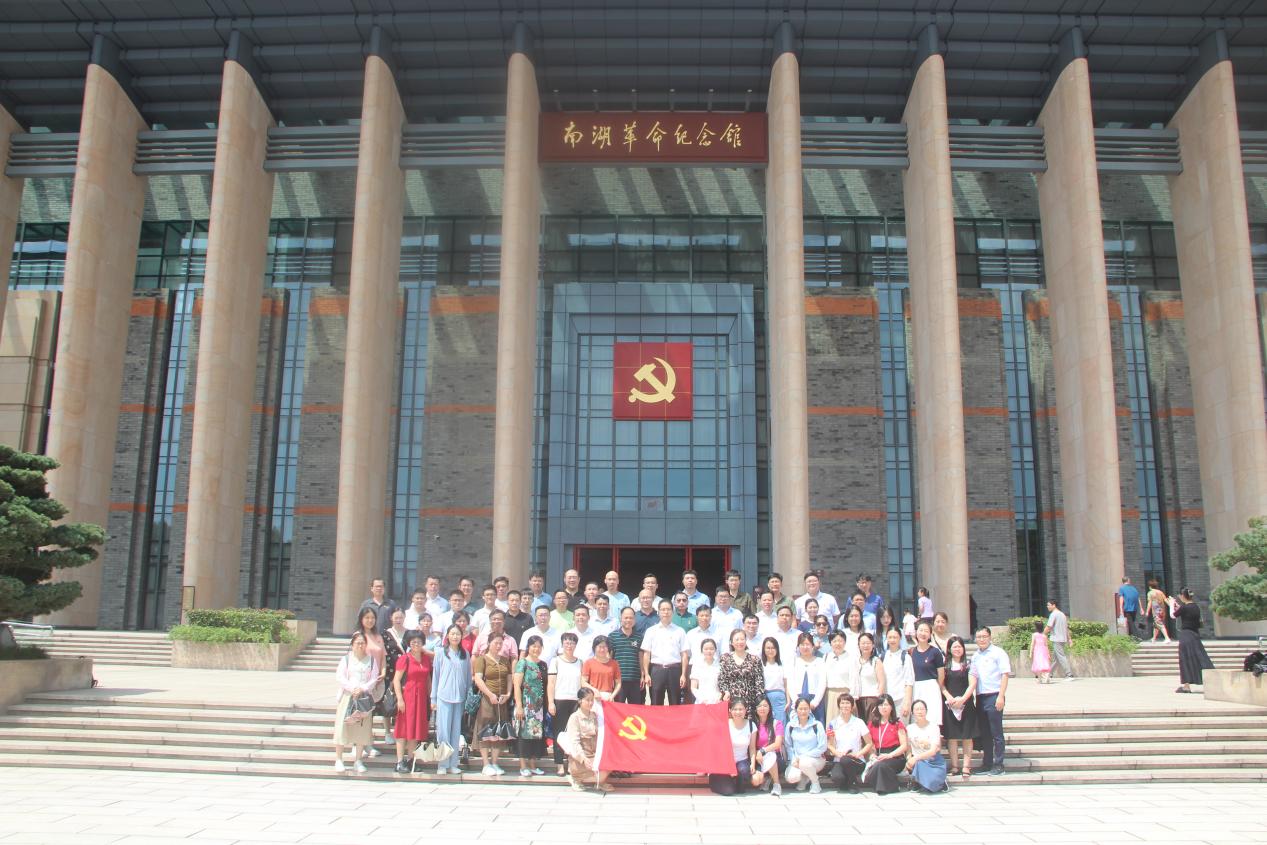 在南湖革命纪念馆前合影