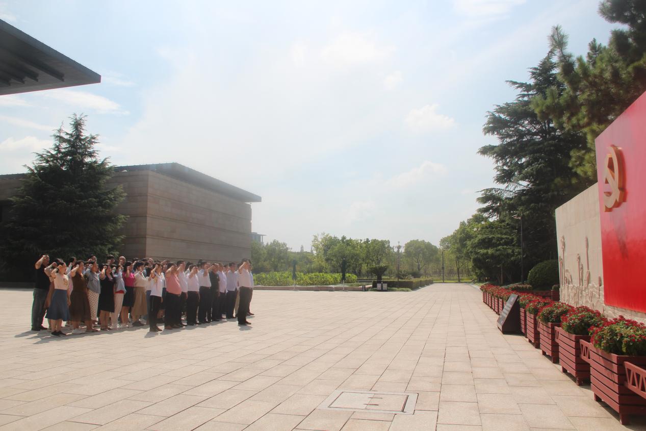 在纪念馆外宣誓墙重温入党誓词