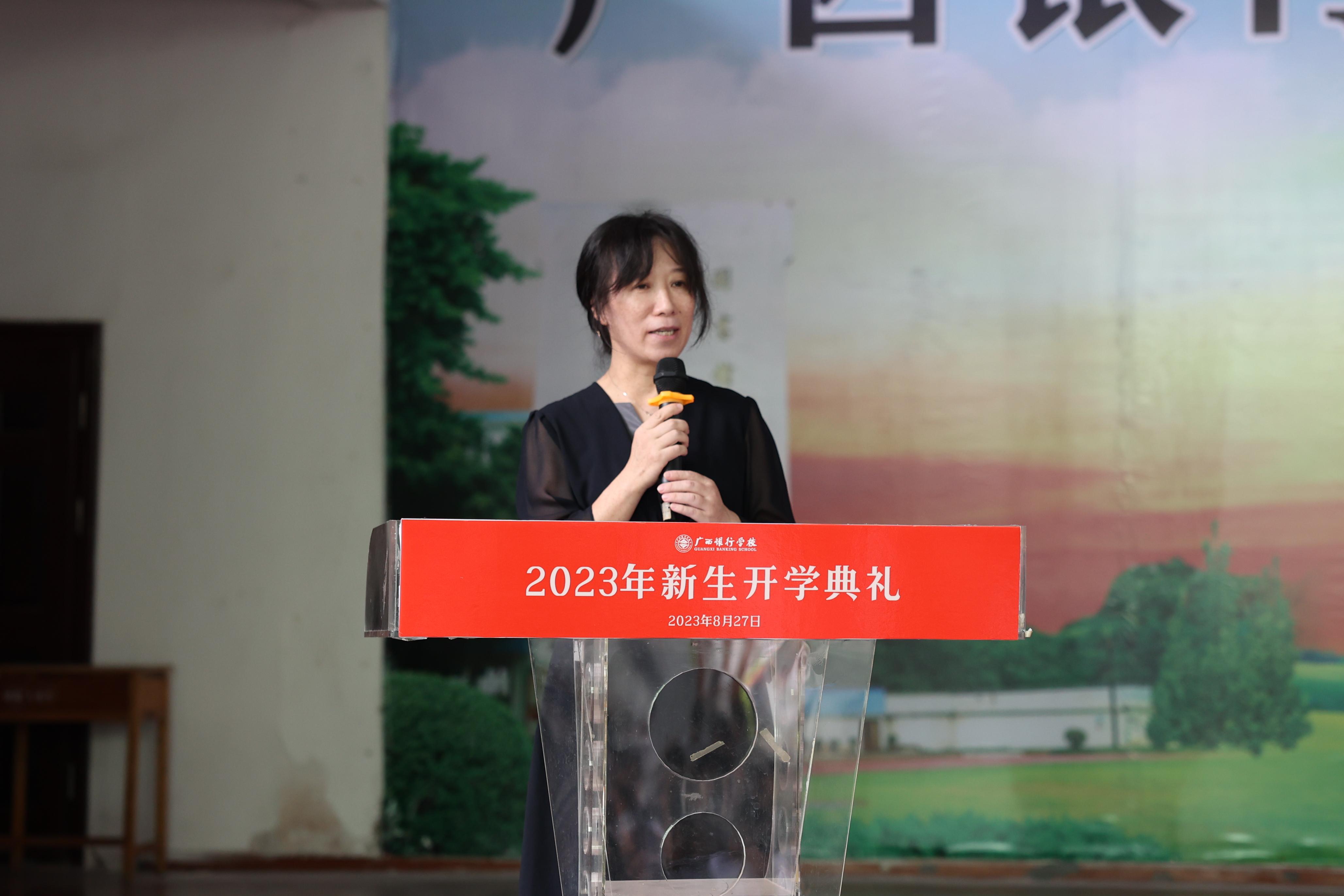 经济管理系老师杨芬作为教师代表发言,希望新同学们认真遵守学校的规章制度,诚实守信、积极进取;也希望同学们能够树立正确的人生观和价值观,明确自己的方向目标,坚持自己的原则和信念,拥有广阔的胸怀,开放的心态和思维,努力创造自己的辉煌人生。