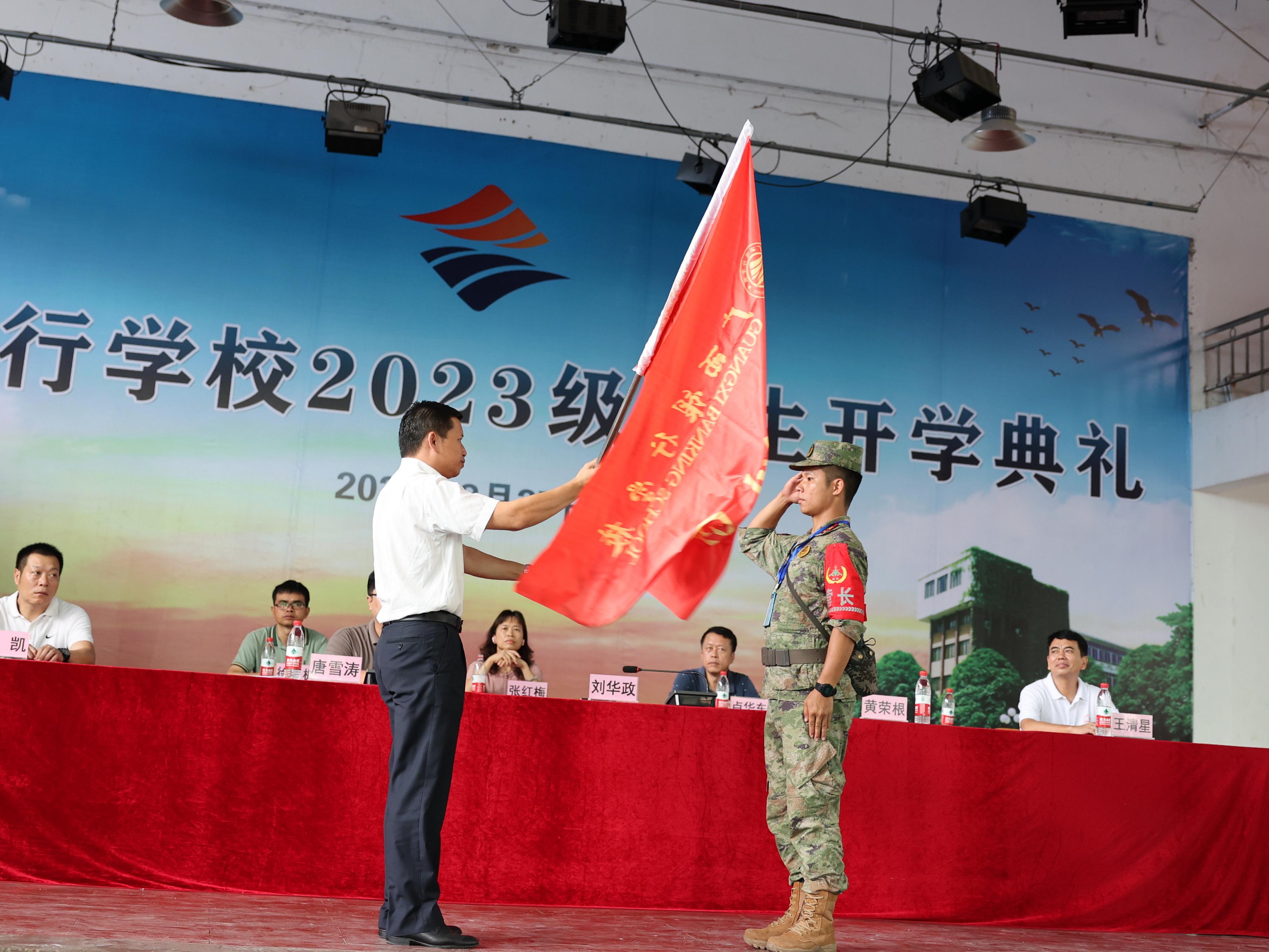 刘华政副书记向军训团授旗。旗帜凝聚着师生的梦想,全体学生严阵以待,相信军训团将会严格要求,按纲施训,以良好的精神风貌、扎实的军事素养,确保各项军训工作安全、顺利、圆满完成。