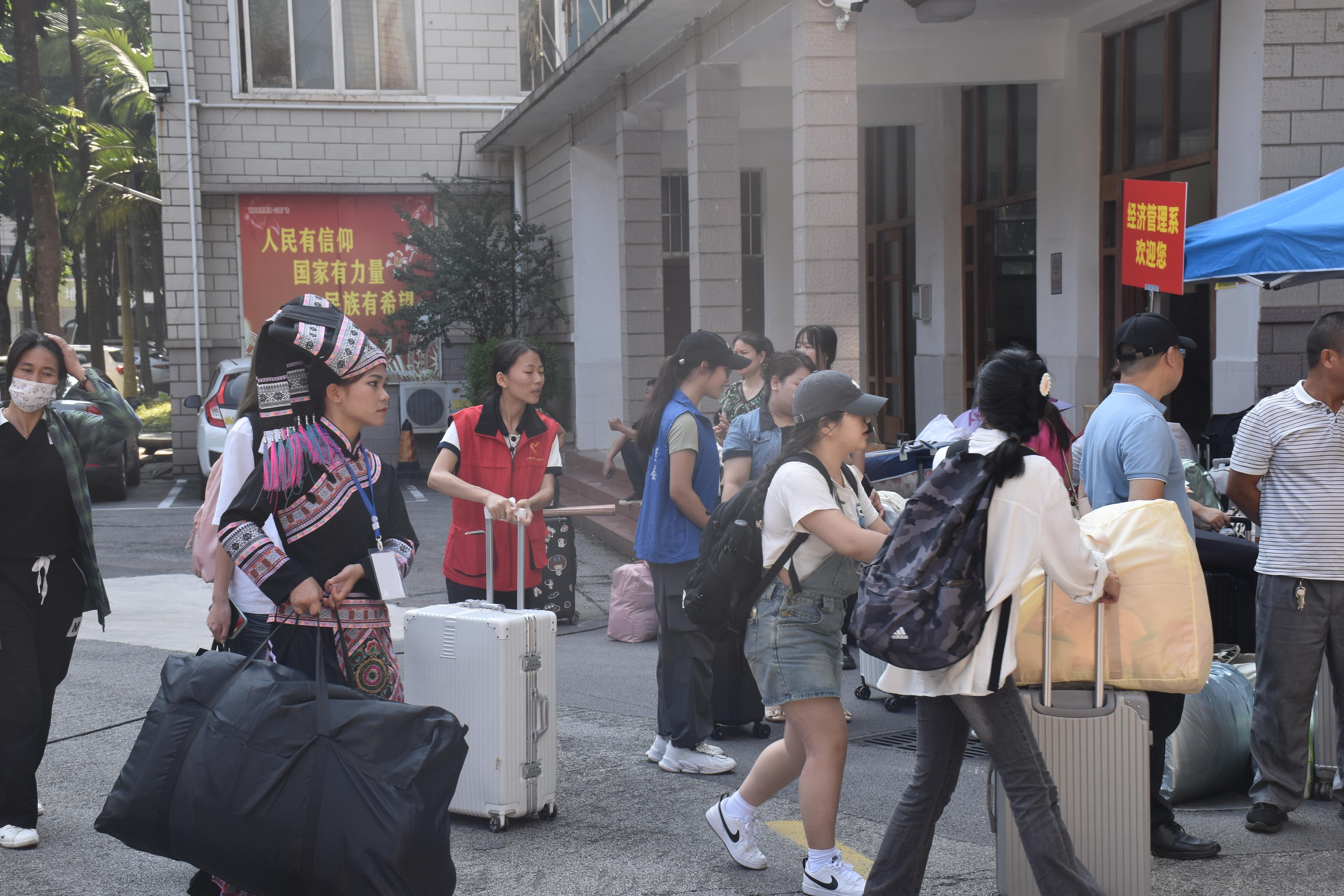 为给新生入学提供更全面的保障和更周全的便利服务,学校提前做好了全方位部署,各职能部门尽职尽责,用暖心的服务为新生的“金院第一天”保驾护航。学生志愿者忙着为学弟学妹们搬运行李,在校内各主要路口,耐心地向新生提供引导、指示和答疑等服务,在躬行实践中展现着新一代金院人的责任与担当。