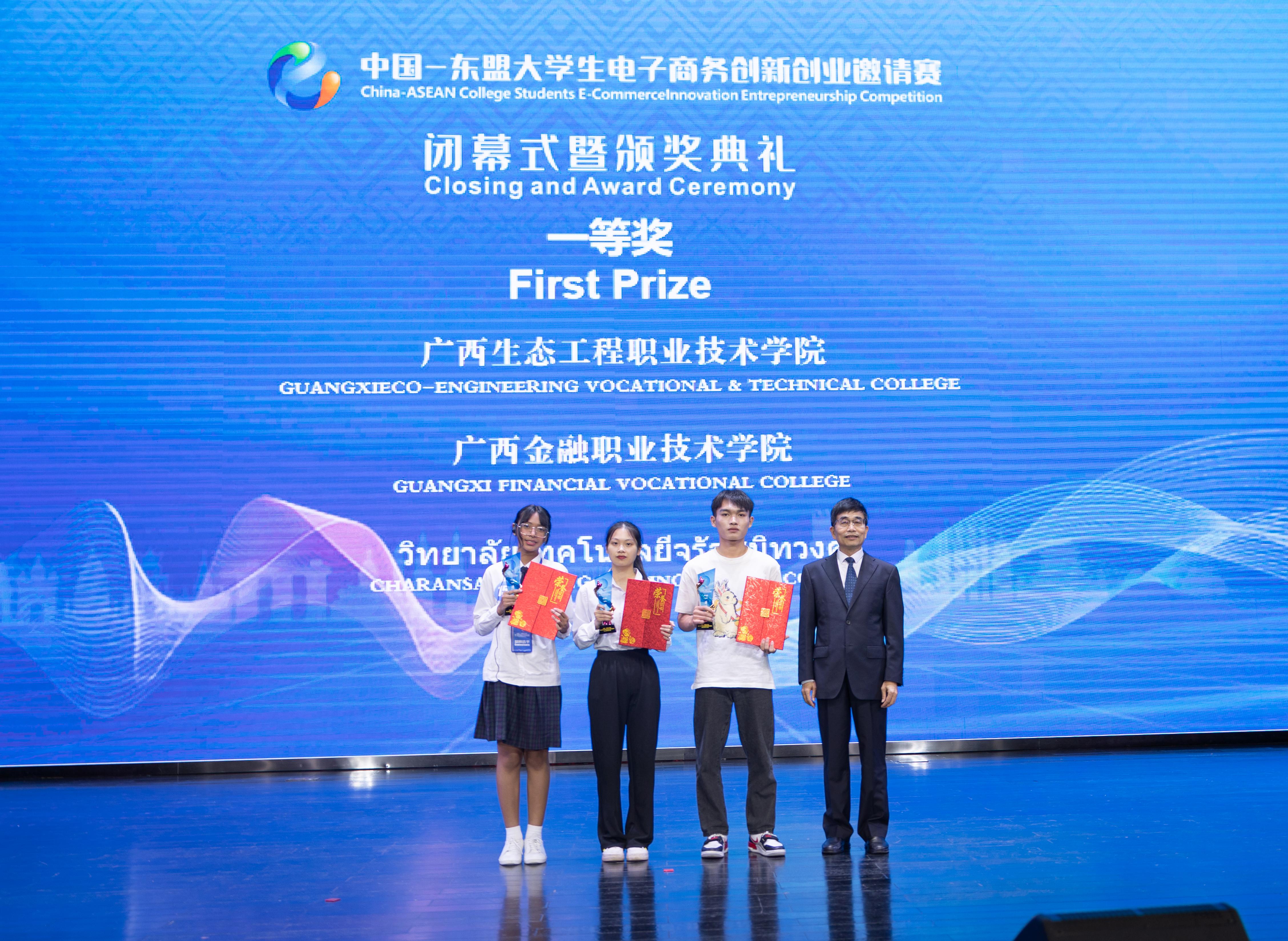 3支队伍获得一等奖,广西壮族自治区教育厅二级巡视员陈标智为获得一等奖的参赛选手颁奖。