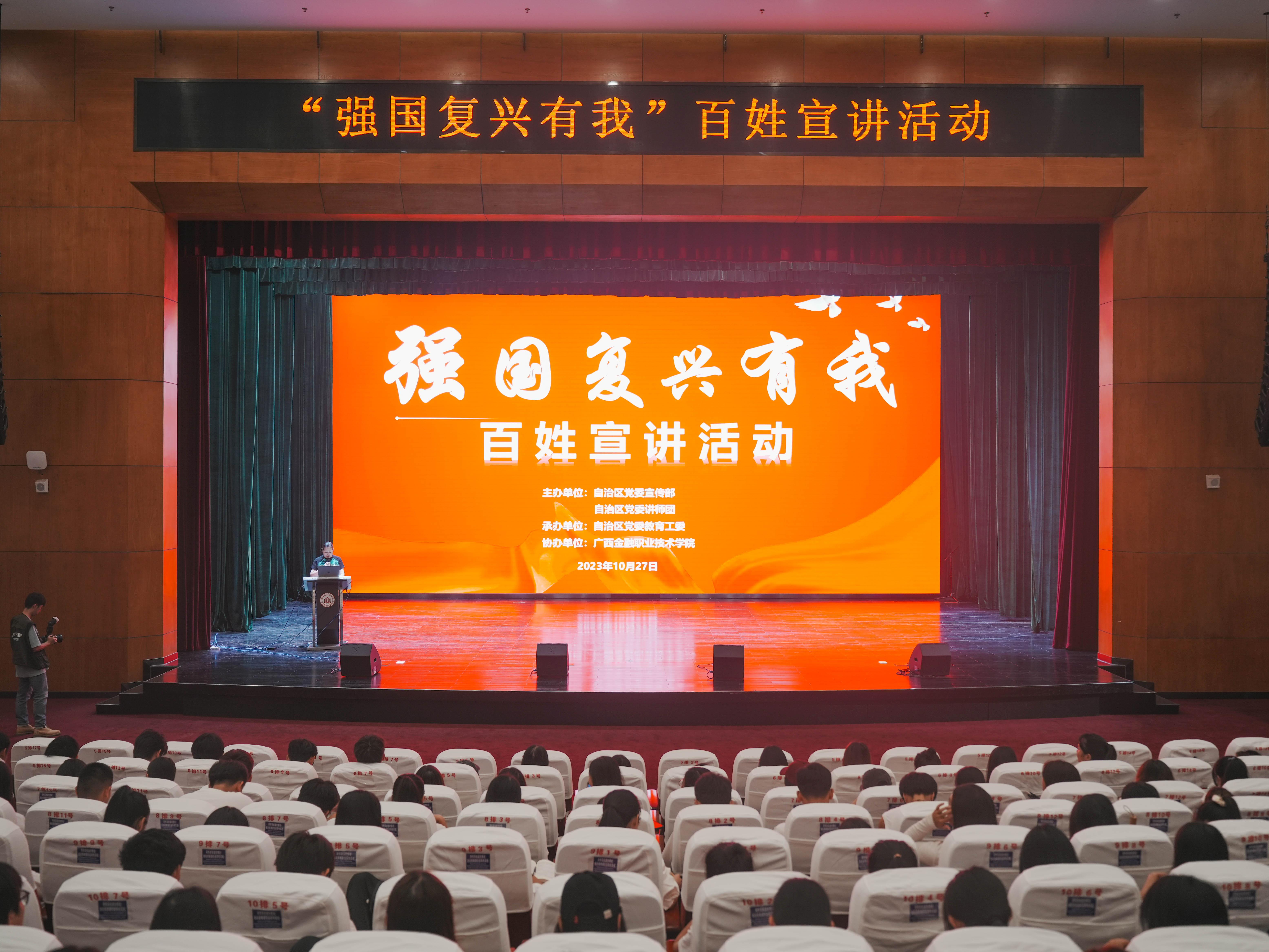 本次活动由广西机电职业技术学院马克思主义学院院长黄振宣教授、广西幼儿师范高等专科学校马梦瑶同学、广西工商职业技术学院潘玥亦同学依次进行主题宣讲。