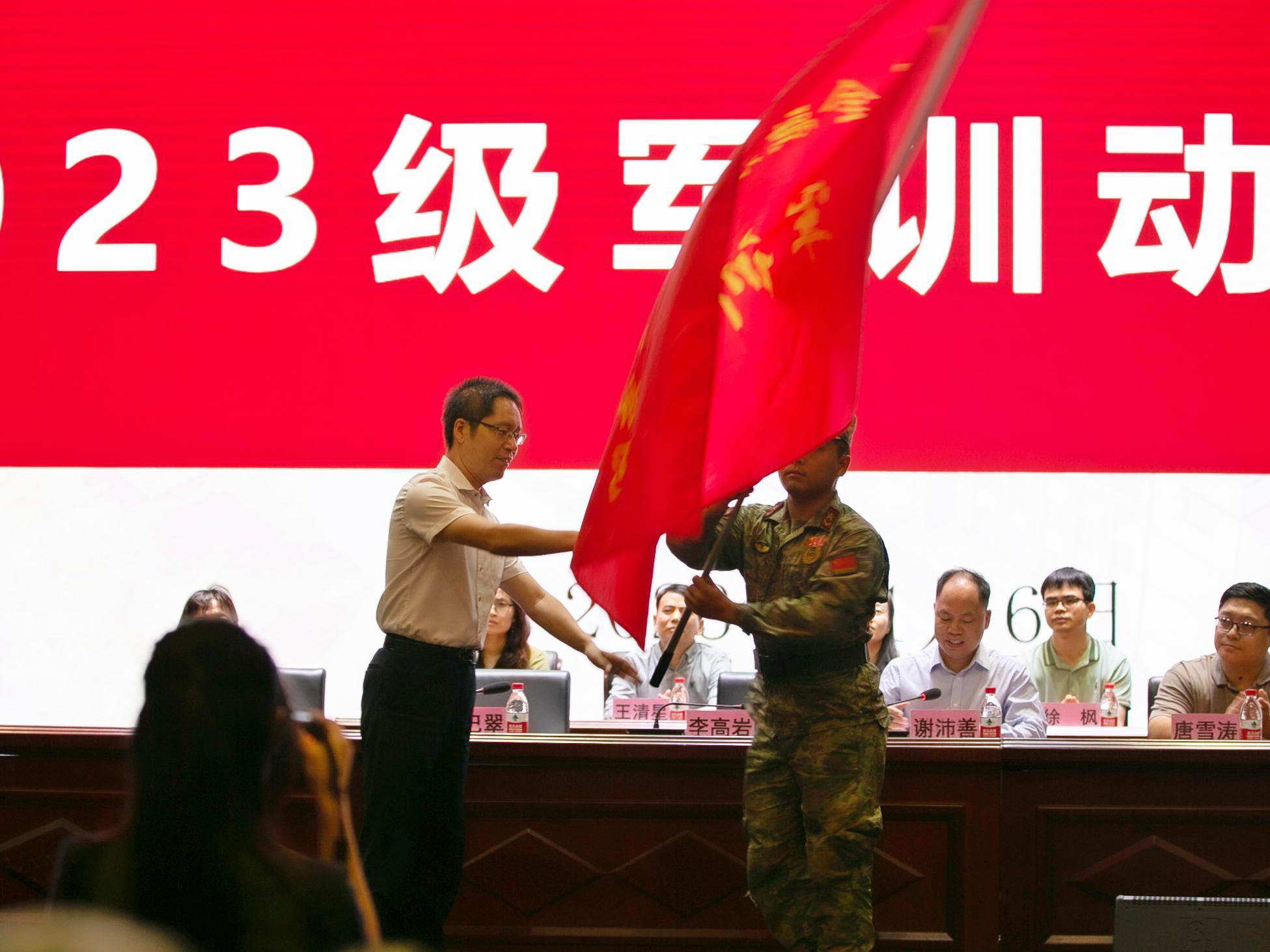 会上,李高岩书记和莫海燕院长向承训单位授军训团团旗,鲜红的旗帜高高飞扬,标志着西汉姆联2023级高职学生军训正式拉开帷幕。