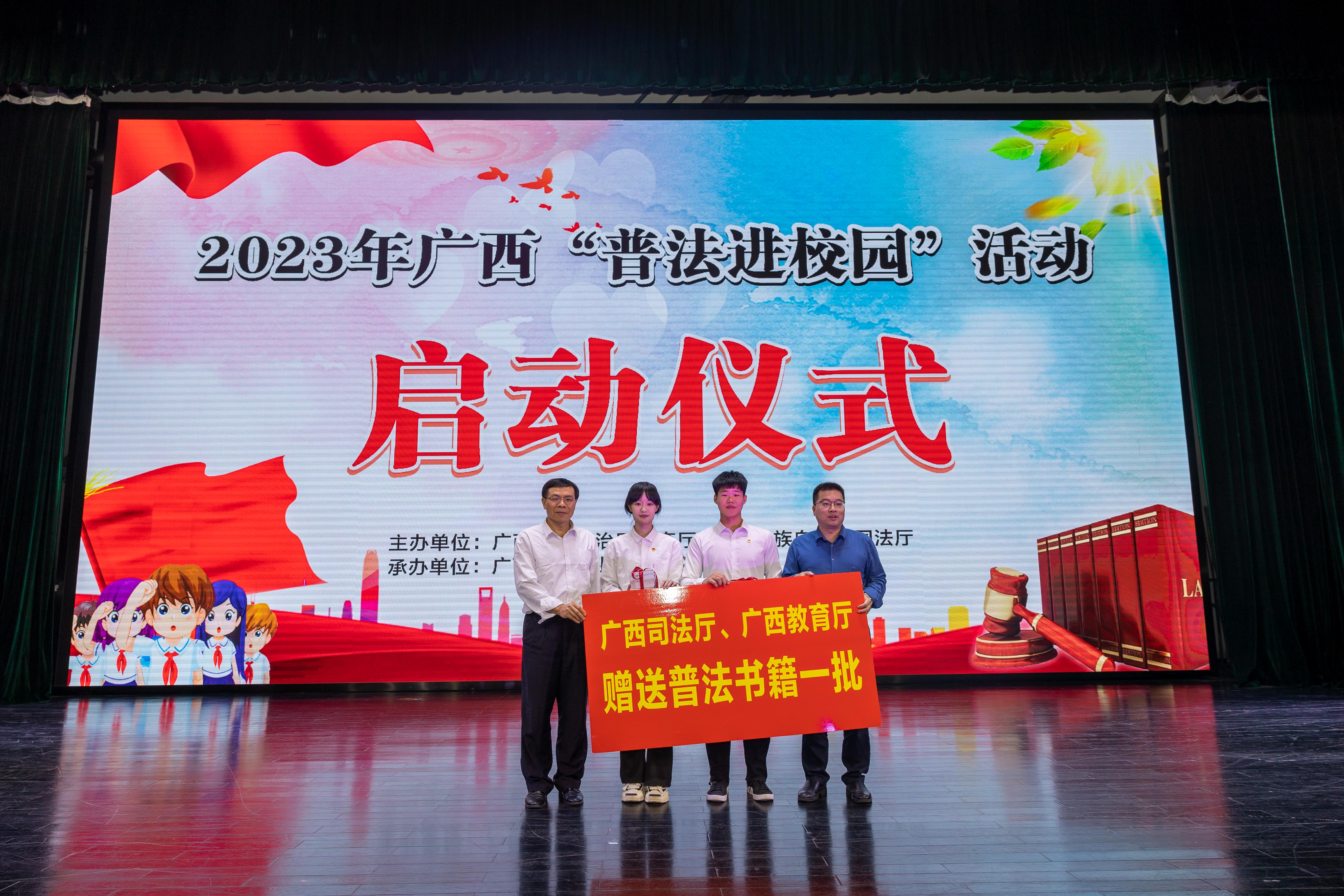自治区司法厅普法与依法治理处处长陆建武讲话指出,青少年是国家的未来,是民族的希望。学校是青少年教育管理的主阵地,我们要用法治的力量,为青少年健康成长提供高质量的法治服务和法律保障。在这个充满机遇和挑战的时代,我们要以习近平法治思想为指导,全面加强青少年的法治宣传教育,做好校园安全“守护者”和法治教育“引路人”,为未成年人健康成长贡献力量。