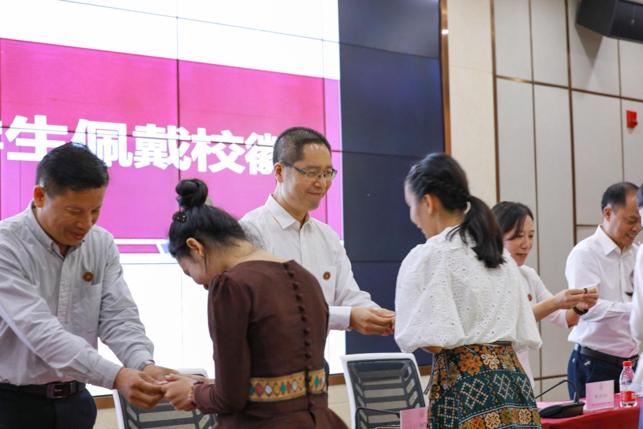 校领导为国际学生颁发校徽