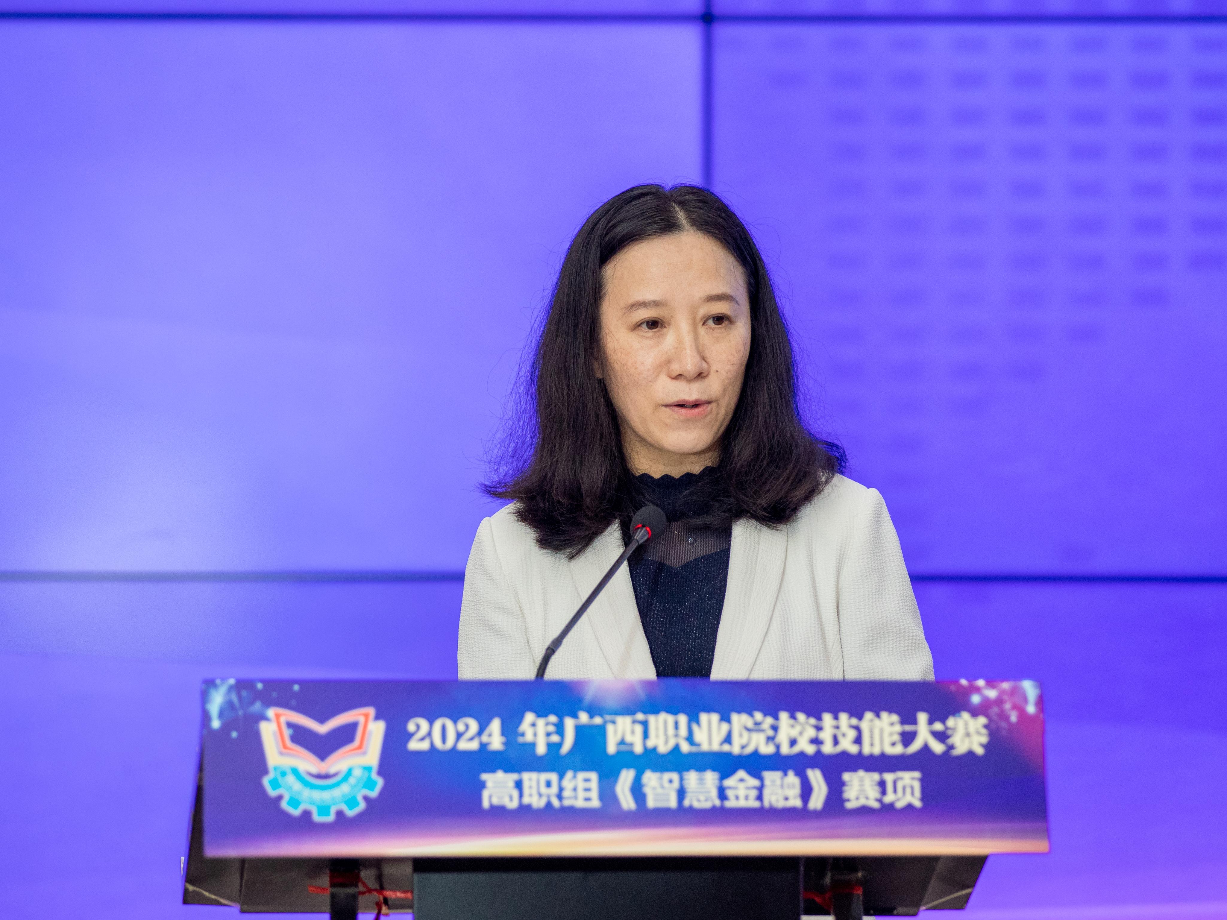 校长莫海燕出席开幕仪式并致辞,她首先代表学校全体师生,向远道而来的各位裁判、领队和参赛选手表示欢迎,向大赛筹备工作团队表示感谢。莫海燕校长表示,学校曾多次承办广西职业院校技能大赛、中国-东盟跨境电商技能大赛、桂-台大学生创新创业比赛等诸多赛事,积累了较好的办赛经验。非常荣幸能为本次参赛队伍和参赛选手提供赛事服务,学校将竭尽所能做好场地、设备、安全、医疗等各项保障工作,协助裁判团队营造严谨温馨、安全有序、公平公正的竞赛环境和氛围,确保大赛圆满顺利。