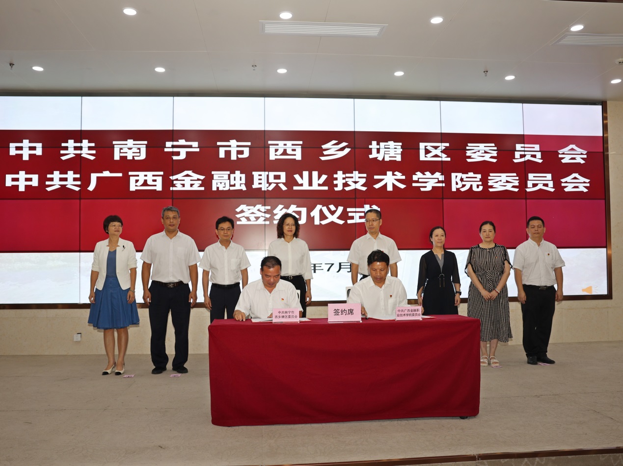 会上,李秋果和李高岩为城校人才孵化基地揭牌,学校党委副书记、纪委书记刘华政与西乡塘区委常委、组织部部长李君共同签订《中共betway西汉姆联官网委员会 中共南宁市西乡塘区委员会合作共建框架协议书》。