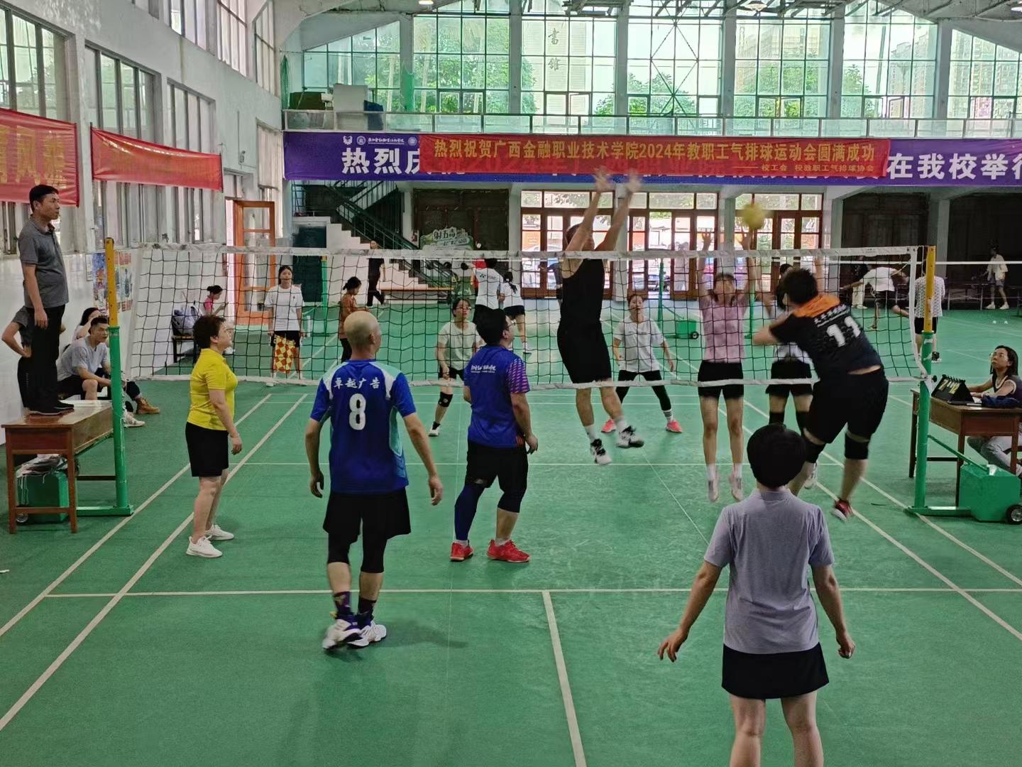 本次比赛采用循环赛制,每周一至周四的课余时间,教职工们齐聚赛场,展开激烈角逐。这一赛制确保了每支队伍都能与其他队伍充分交锋,增加了比赛的公平性和竞技性。 在比赛过程中,各参赛队展现出了顽强的斗志和高超的技艺。他们默契配合,每一次发球、接球、传球、扣球都凝聚着团队的智慧和力量。赛场上,欢呼声、加油声此起彼伏,气氛热烈非凡。