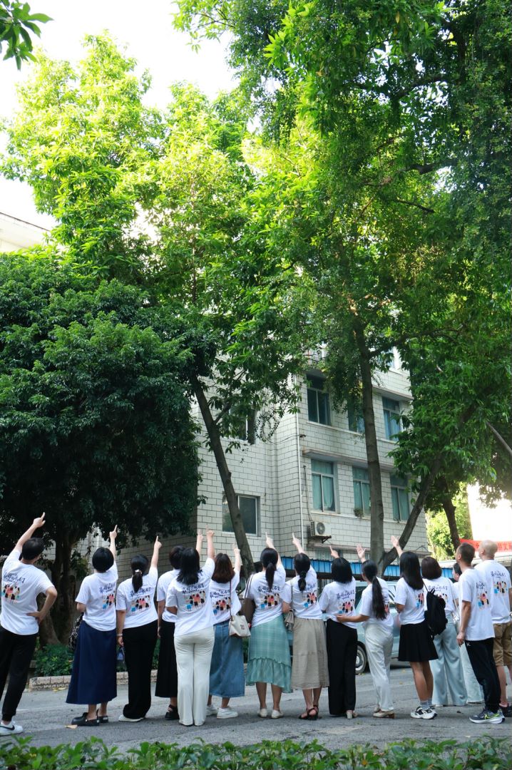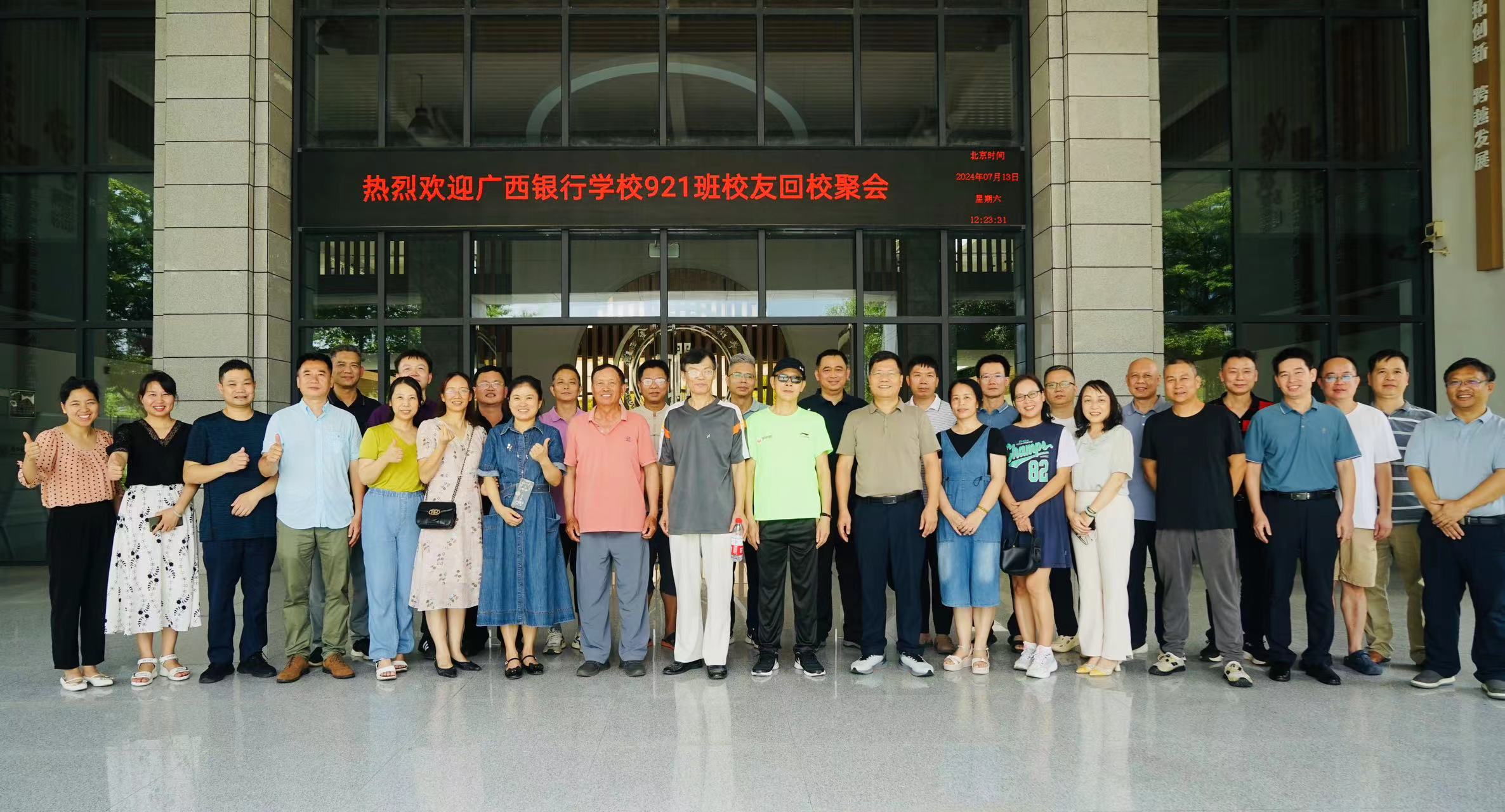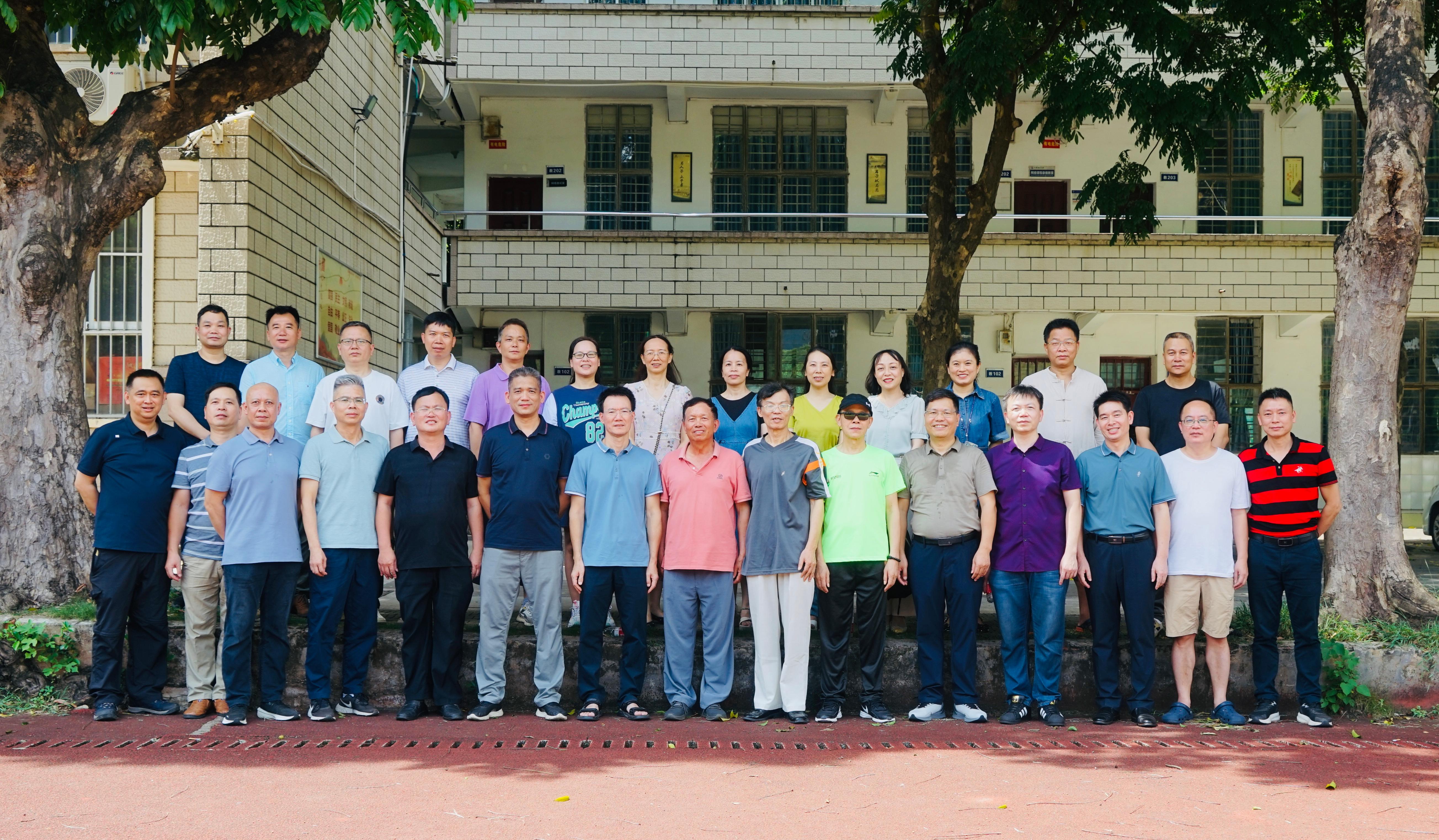校友们在教学楼前合影留念