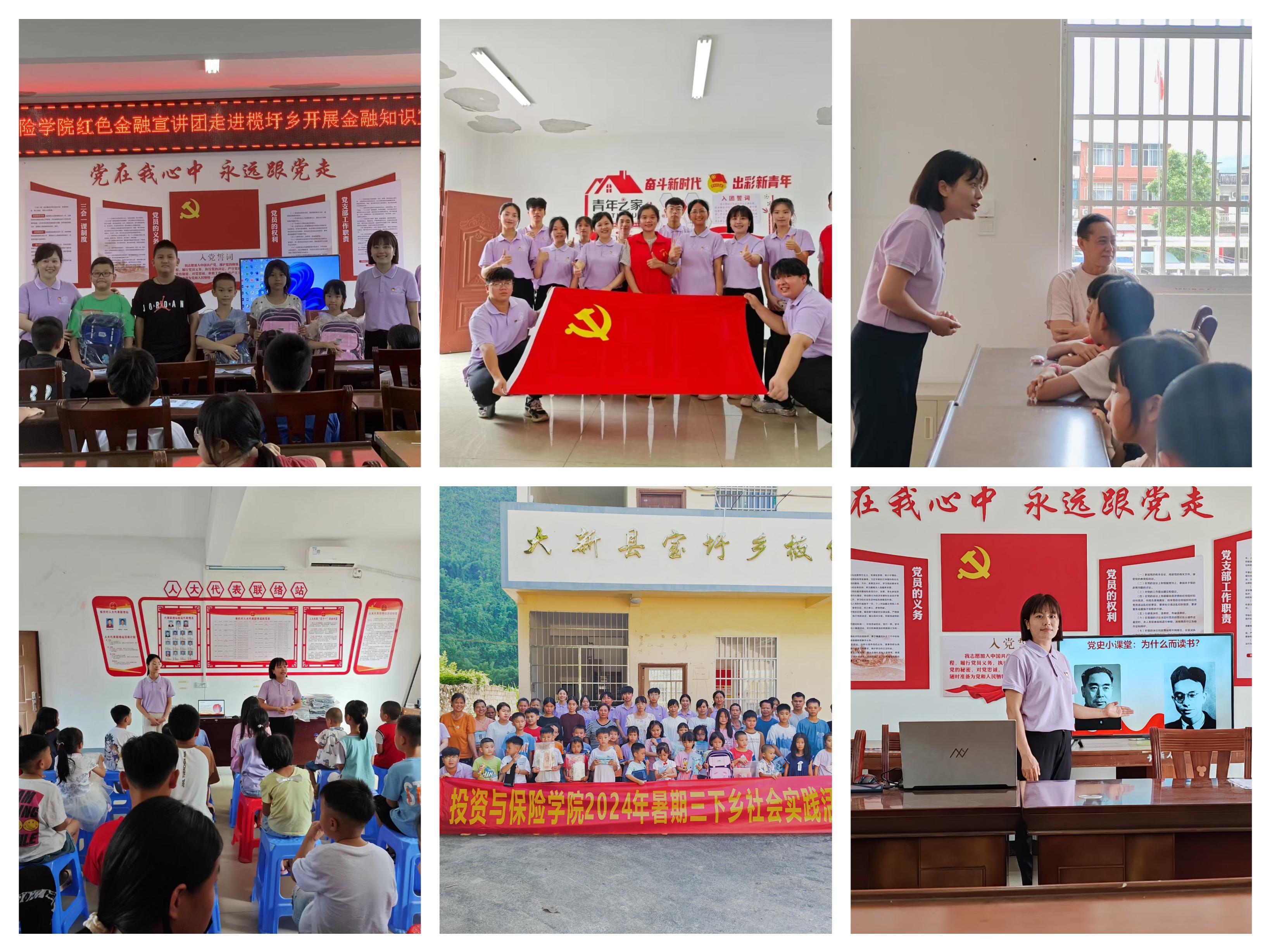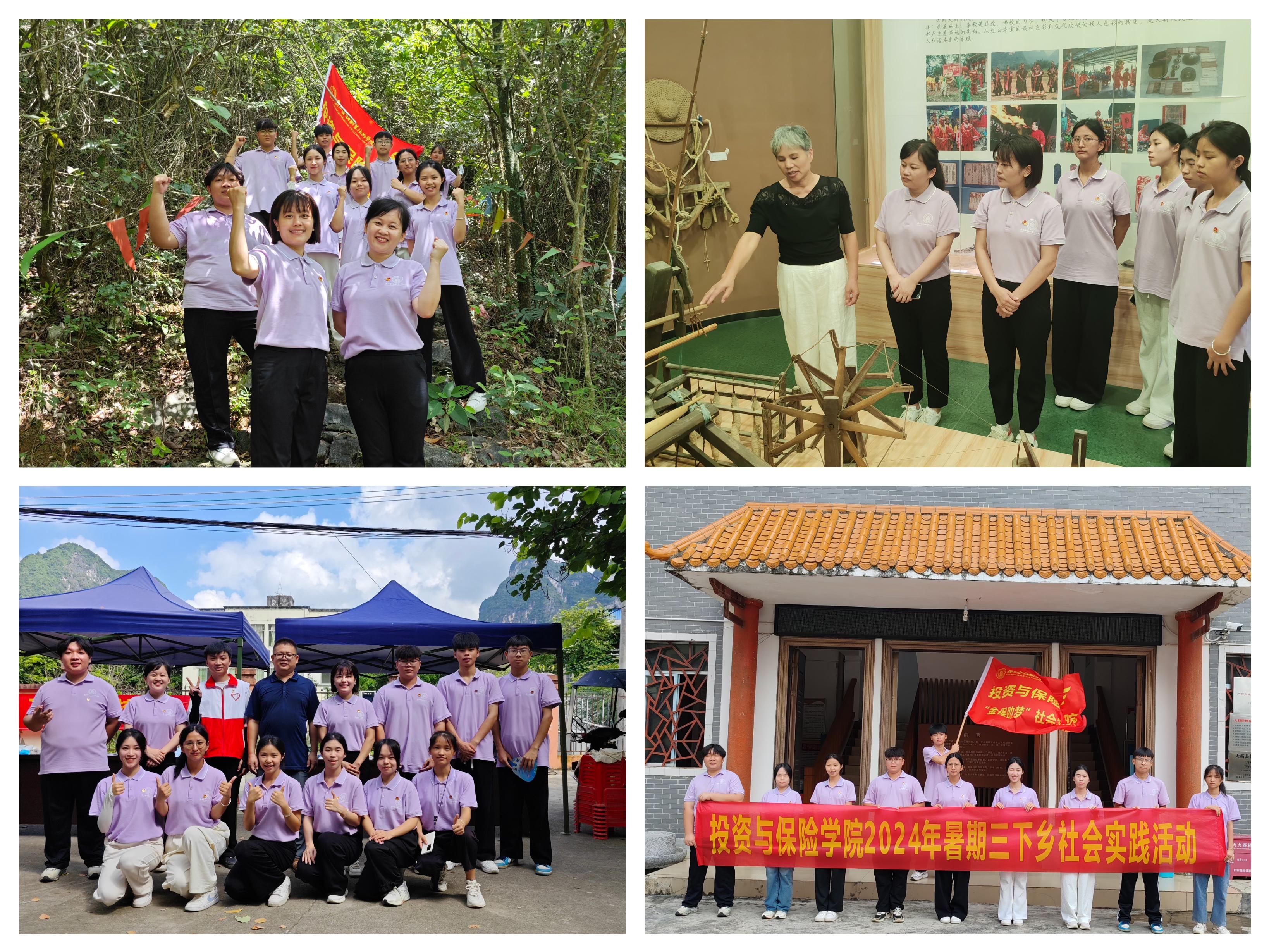 为深入学习宣传习近平新时代中国特色社会主义思想,贯彻落实习近平总书记关于“大思政课”的重要指示批示精神,推动思政小课堂与社会大课堂相结合。7月13日-18日,在西汉姆联潘瑞兰老师的指导下,投资与保险学院“金保助梦”实践团深入崇左大新县榄圩乡、宝圩乡开展2024年大学生暑期文化科技卫生“三下乡”社会实践活动,以“行走的思政课”为引领,让学生在实践中受教育、长才干、作贡献,为乡村振兴贡献青春力量。
