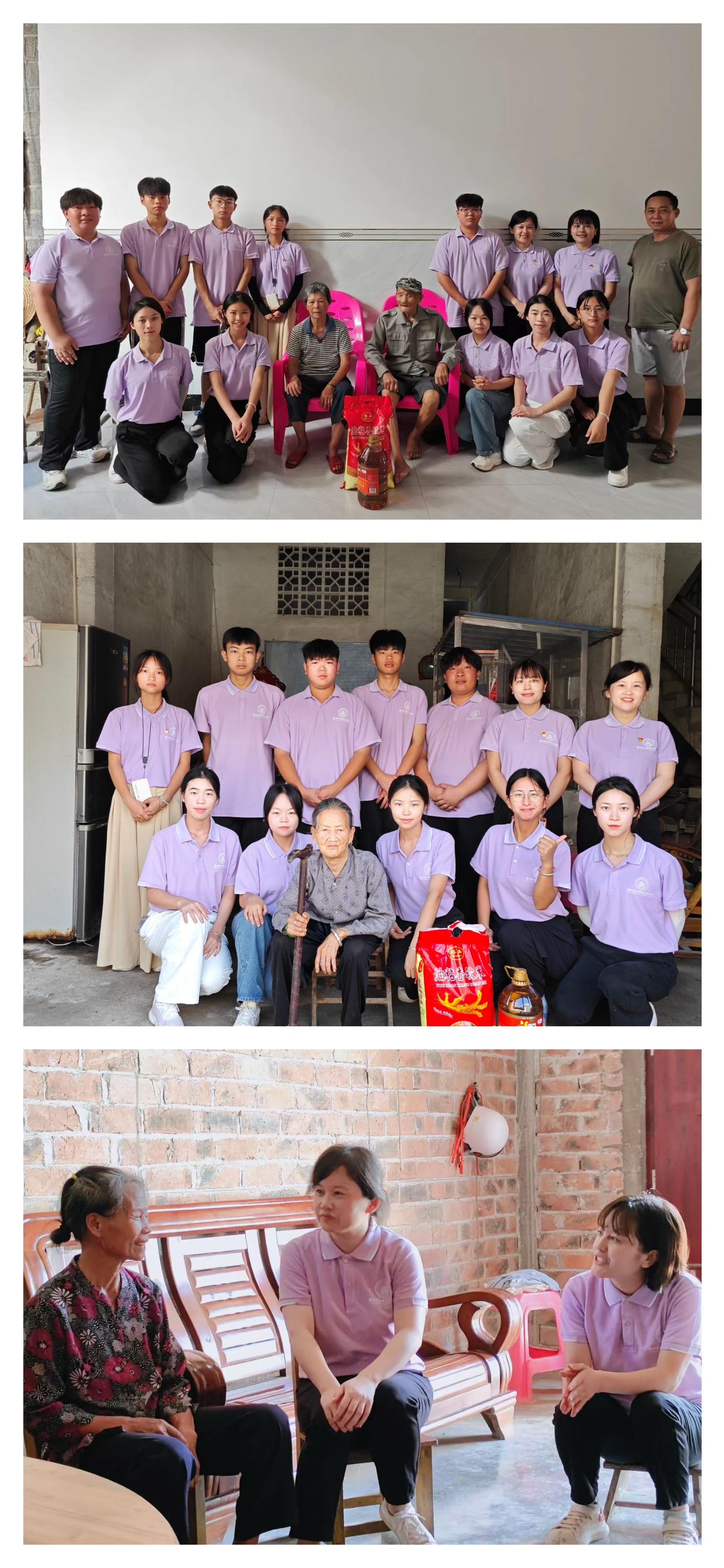 7月16日社会实践队于大新县榄圩乡开展“关爱民族地区老人,促进民族团结”送温暖走访慰问活动,为乡村老年人家庭送去关怀和问候,用实际行动温暖老人们的心窝。