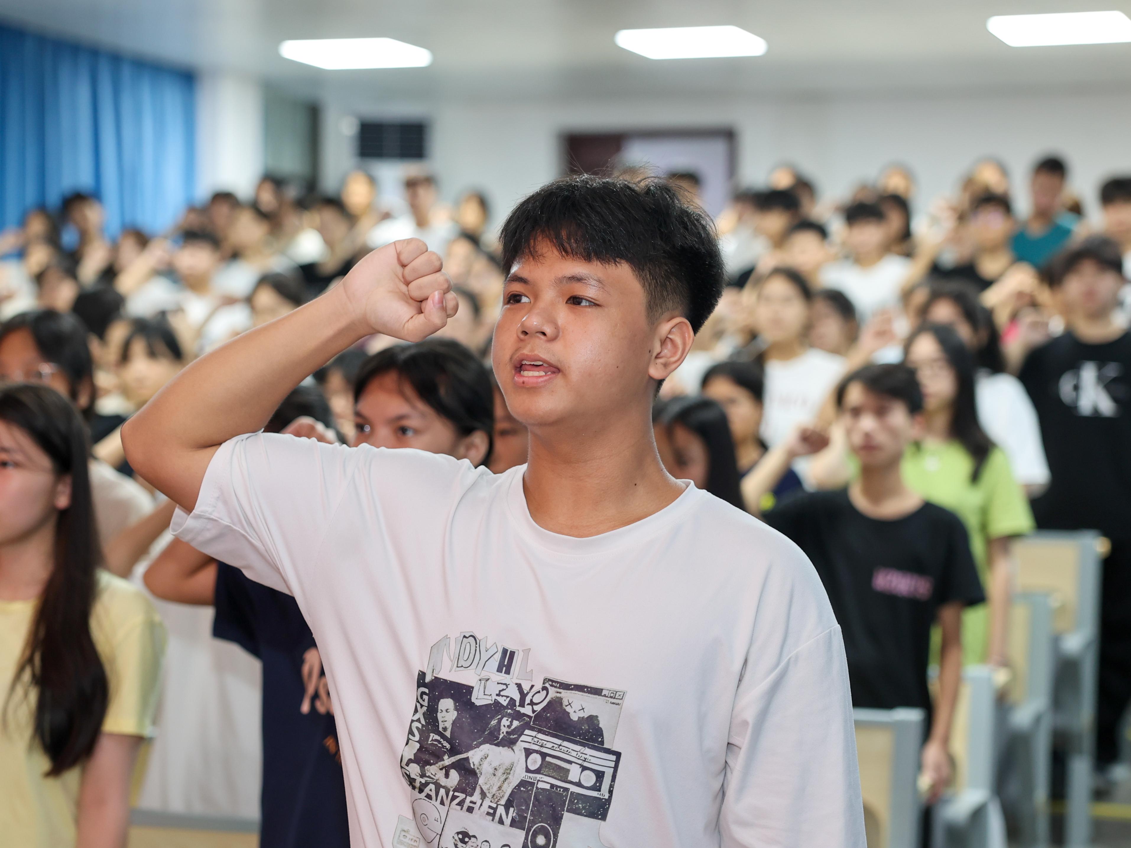 老生代表带领全体新同学宣读《入学誓词》,开学典礼在全体新同学声声誓言中圆满结束。