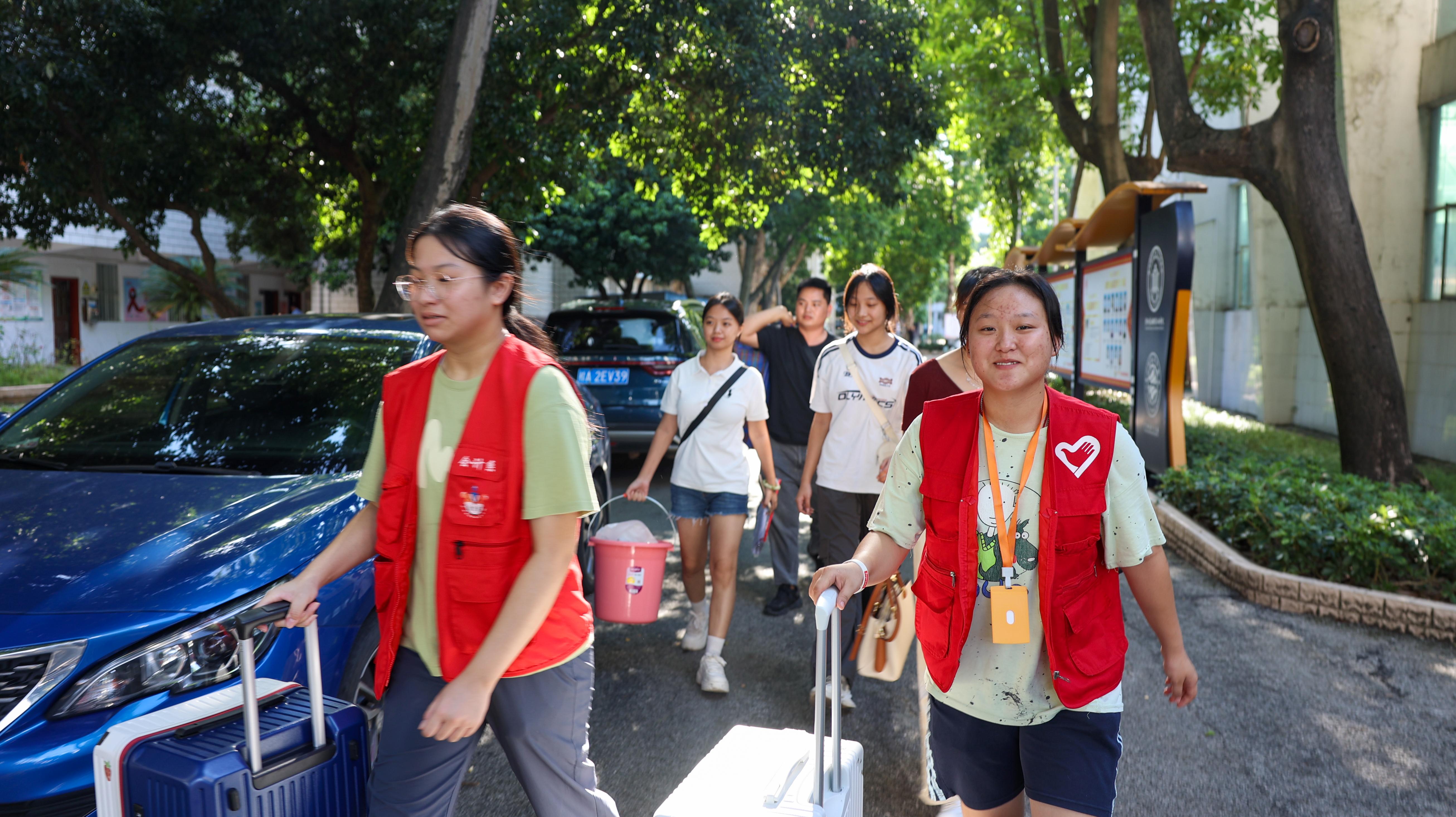 学校志愿者协助新生搬运行李