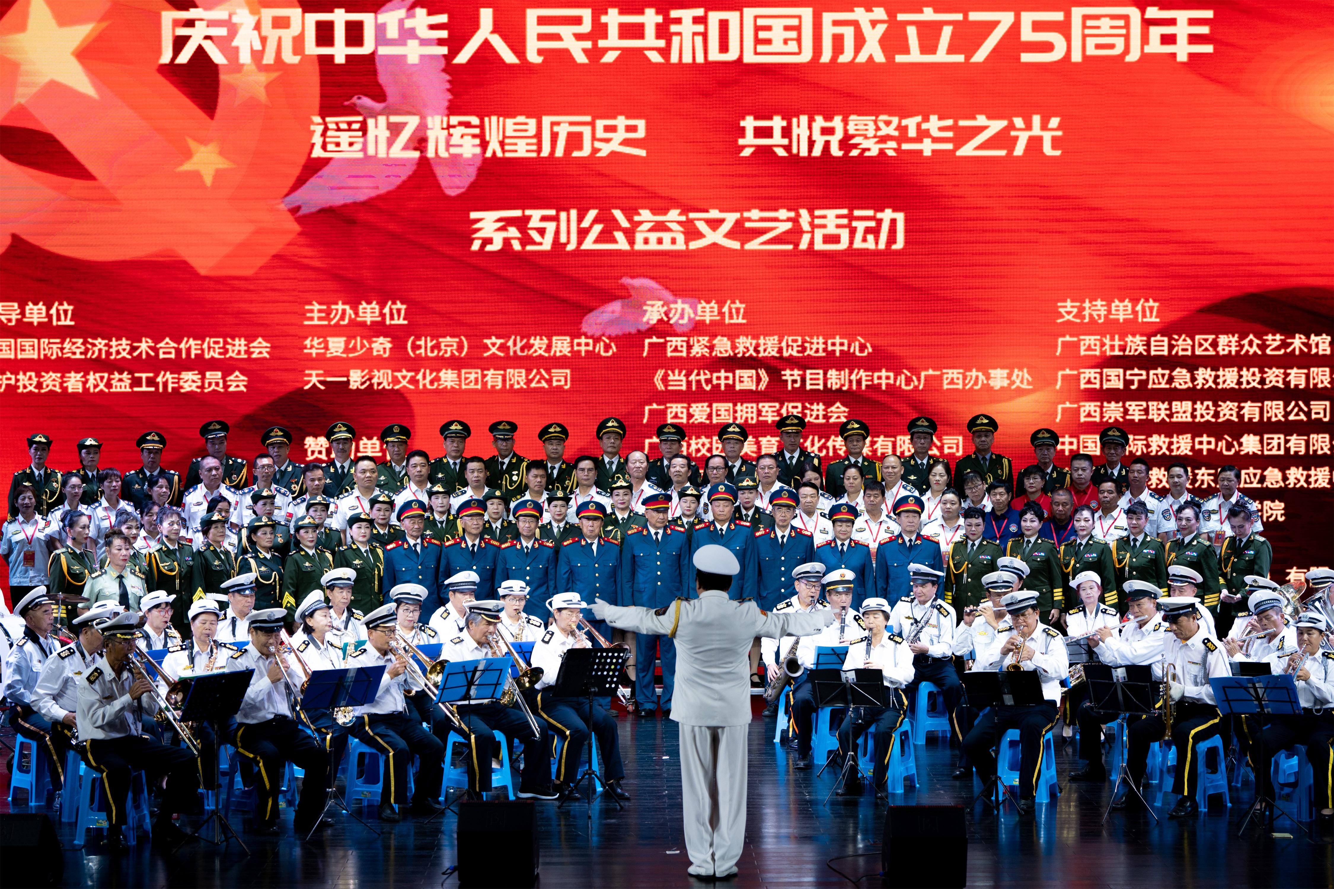 活动在庄严的国歌声中拉开帷幕。现场气氛庄严,由广西八一国旗护卫队护卫国旗进场,他们迈着整齐划一、坚定有力的步伐,护送着鲜艳的五星红旗走向舞台。