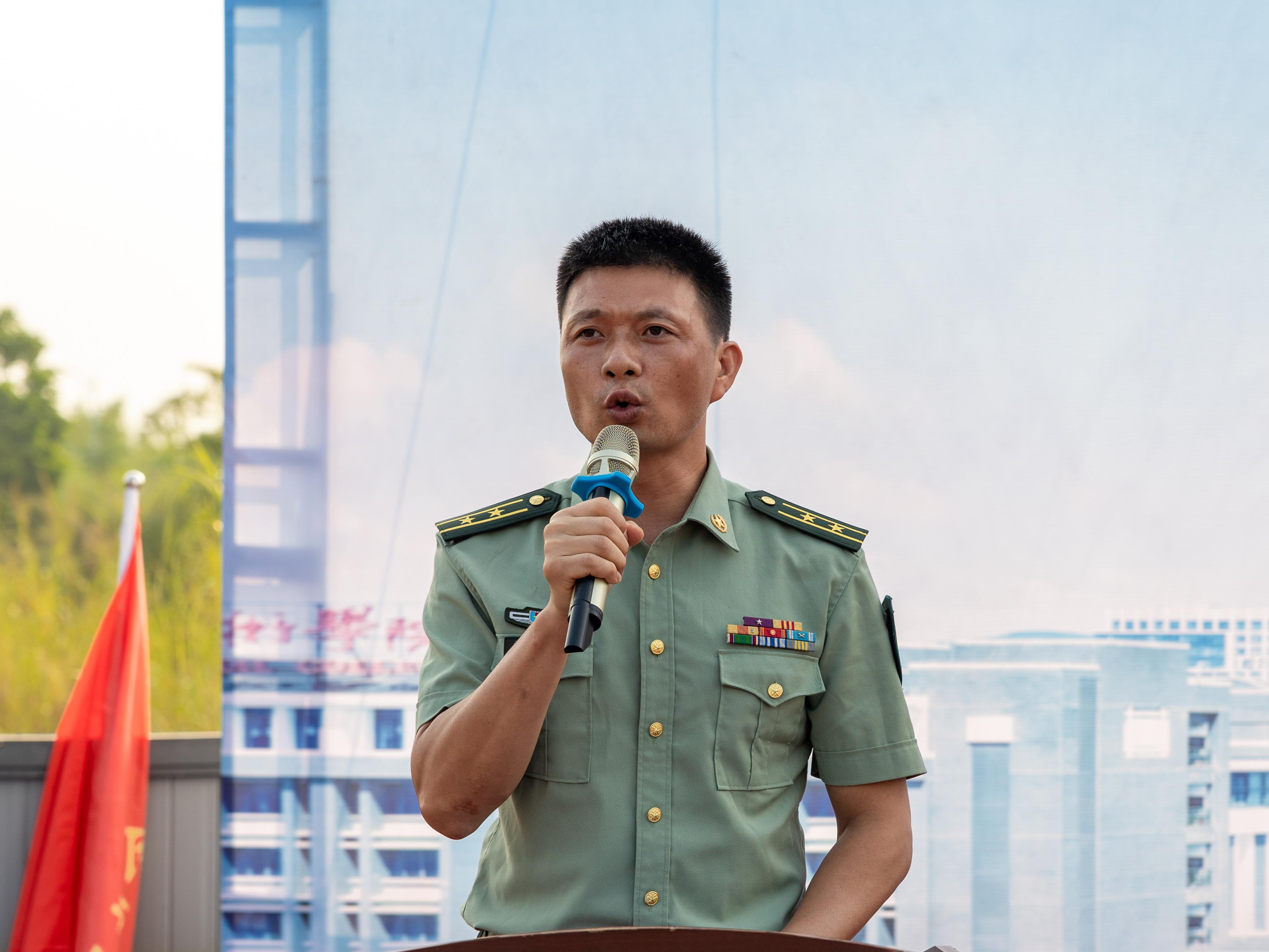 教官代表石槟官、陈少峰在两校区发言,他们表示军训不仅是增强体质、培养纪律的重要途径,更是锤炼意志、提升团队精神的关键时刻。希望同学们以饱满的精神和顽强的毅力投入训练,学会坚持与协作,为未来的学习生活打下坚实基础。