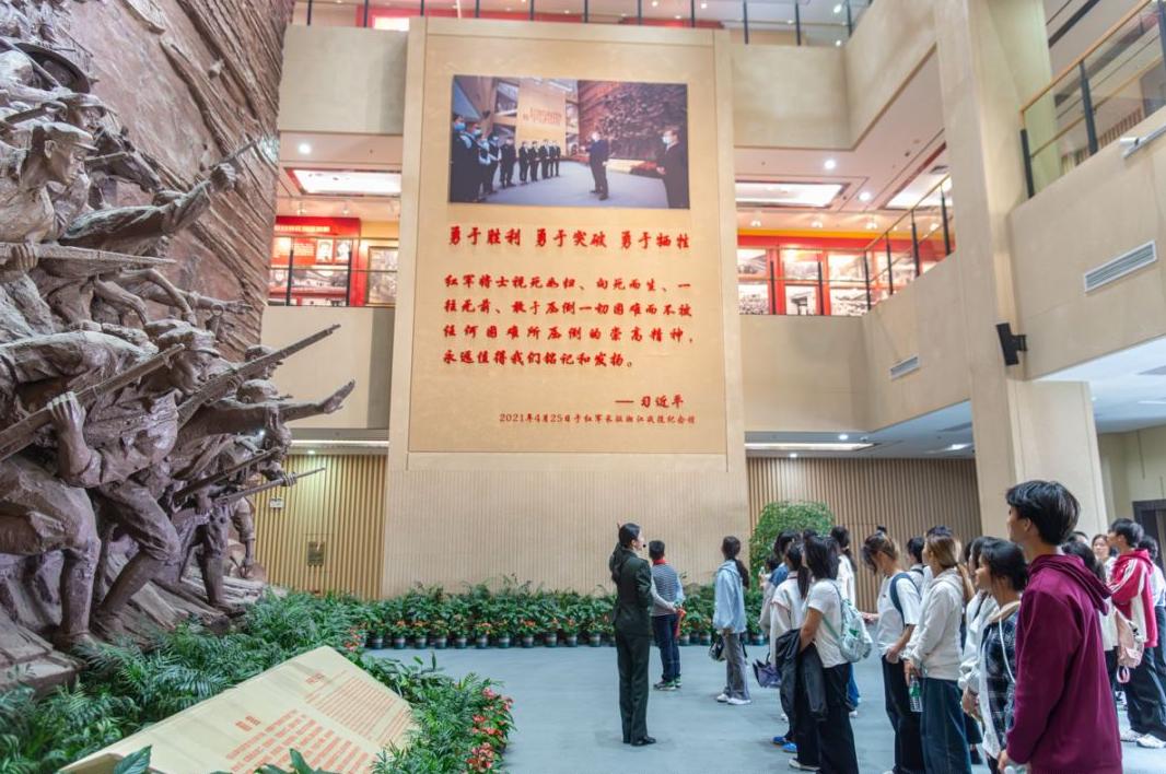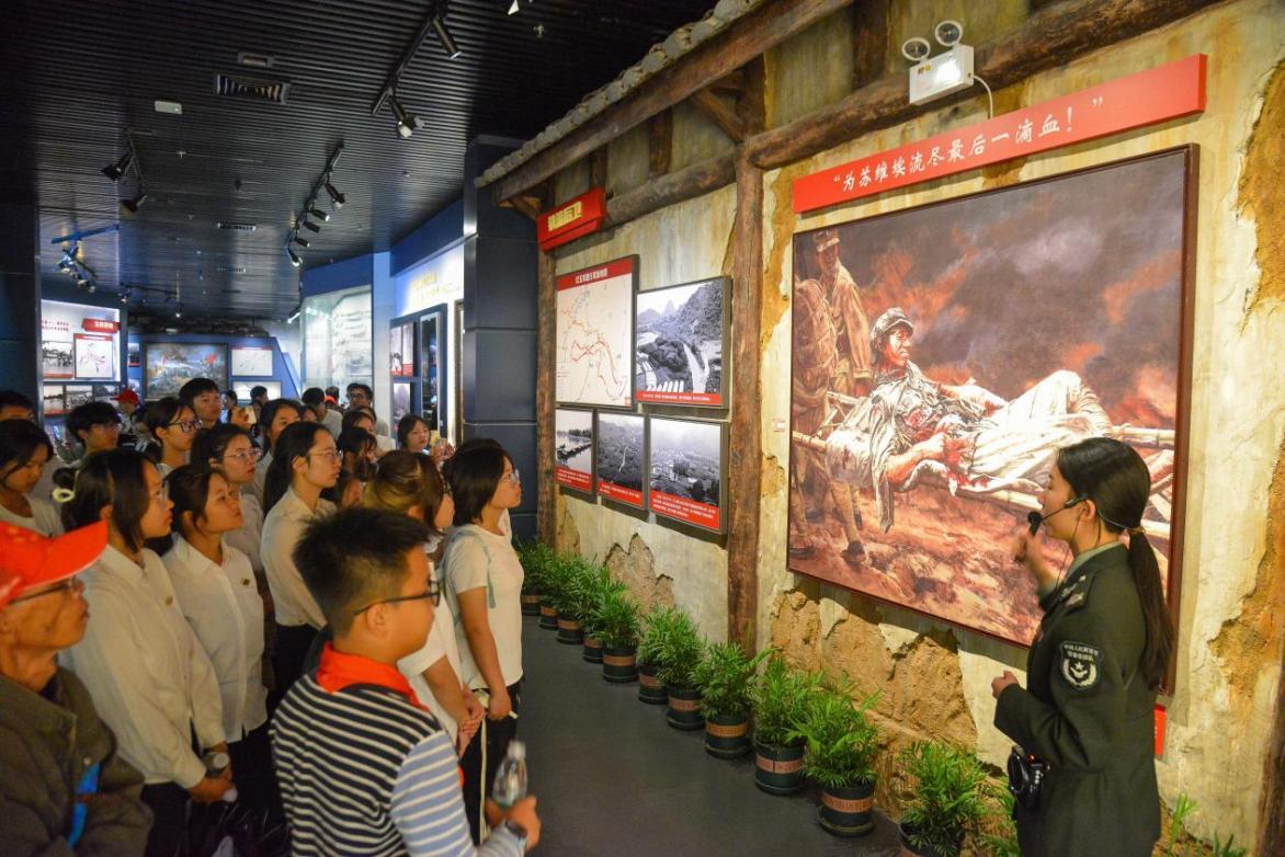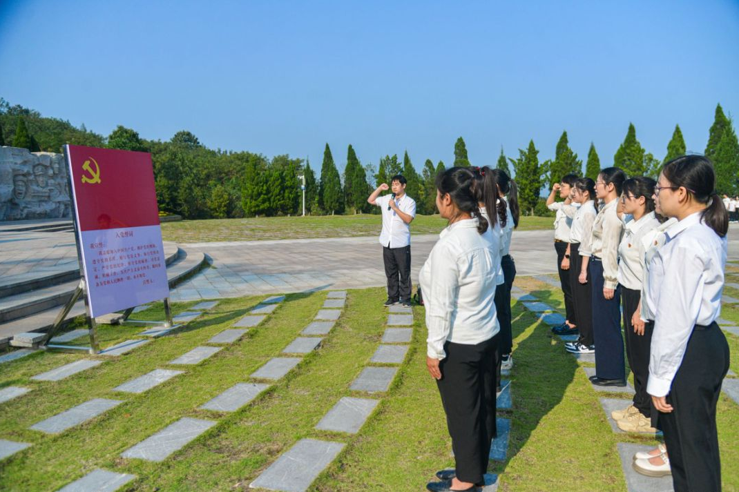 赴全州开展活动的师生,来到红军长征湘江战役纪念馆参观学习,讲解员对湘江战役进行详细描述,全面、系统地介绍红军长征的整个历程和在中国共产党的坚强领导下我国所取得的辉煌成就。纪念馆内的历史照片、史料文物,重现了当年战争的惨烈,让师生更加深刻地理解了革命精神的伟大和崇高。随后,师生们前往纪念林开展祭扫活动,烈士碑园青松苍翠,庄严肃穆,学生代表敬献花篮,全体成员默哀致敬。党员同志整齐排列,高举右拳,重温入党誓词,再一次接受了深刻的党性洗礼。活动过程中,党员同志就革命精神话题进行了深刻交流,老师对学生进行了现场教学。